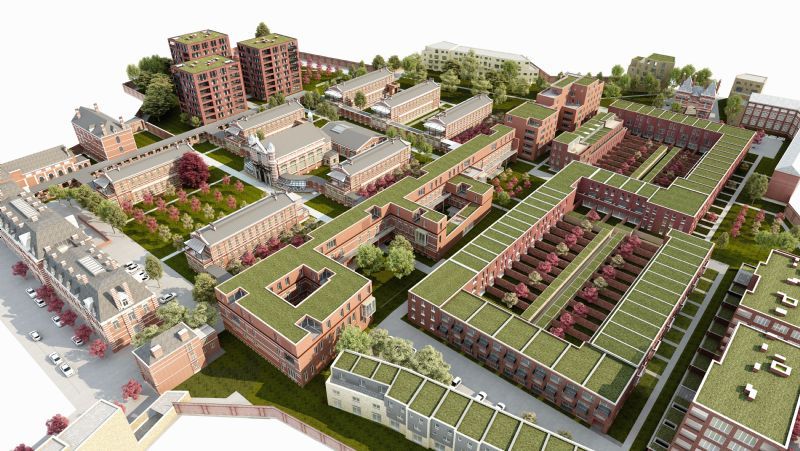 Na een eeuw aan het oog onttrokken te zijn geweest, opende het Militair Hospitaal in Antwerpen opnieuw zijn poorten onder een nieuwe vorm: 't Groen Kwartier. Projectontwikkelaars Vanhaerents en Matexi City Projects vormden de site om tot een uniek woongebied. Het architectenteam onder leiding van Stéphane Beel en Lieven Achtergael werkte een coherent masterplan uit in harmonie met de monumentale gebouwen.