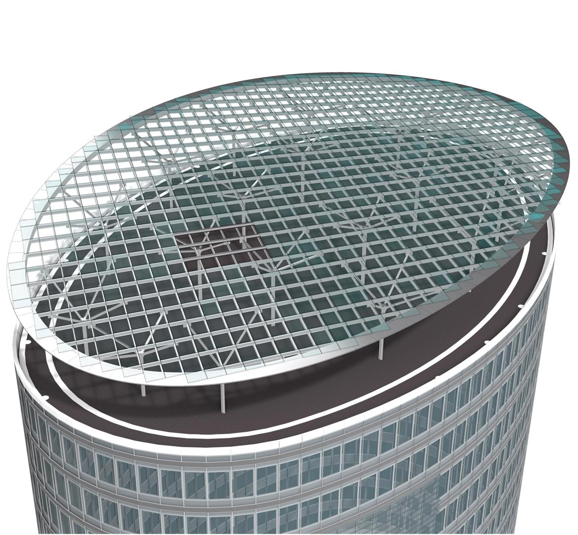 Een van de uitdagingen was de landschappelijke integratie van het bouwelement. De top van de toren is zichtbaar vanaf verschillende strategische punten in de stad, tot aan het Koninklijk Park. Bij het ontwerp werd daarom bijzondere aandacht besteed aan de perimeter: een ringstructuur die refereert aan een boomkroon, met daarbinnen transparant fotovoltaïsch glas. De Stad Brussel en het Brussels Gewest steunen het project actief, dat kadert in een bredere visie op het verduurzamen van de bestaande kantoorvoorraad.