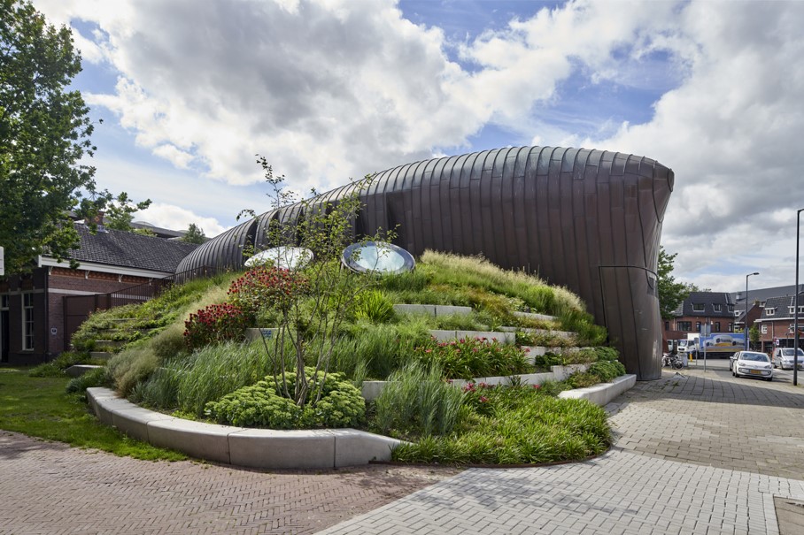 Het gerealiseerde concept is uniek en innovatief. De architect heeft er bewust voor gekozen om de vloeiende lijnen in het ‘groene talud’ te houden, zodat deze aansluit bij het poppodium. De uiteindelijke constructie is gerealiseerd zonder enige concessie te doen aan deze esthetische vormgeving van het originele ontwerp.