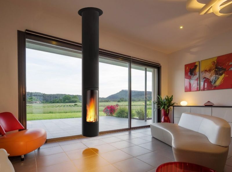 Haardenbouwer Focus presenteert de allereerste hangende haardkachel uitgerust met een concentrische schoorsteen, wat een goede partner moet zijn voor lage energiewoningen en passiefbouw.