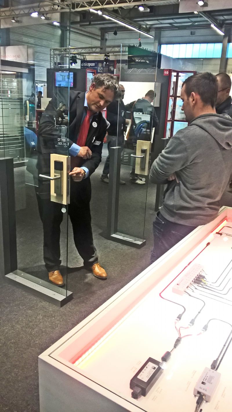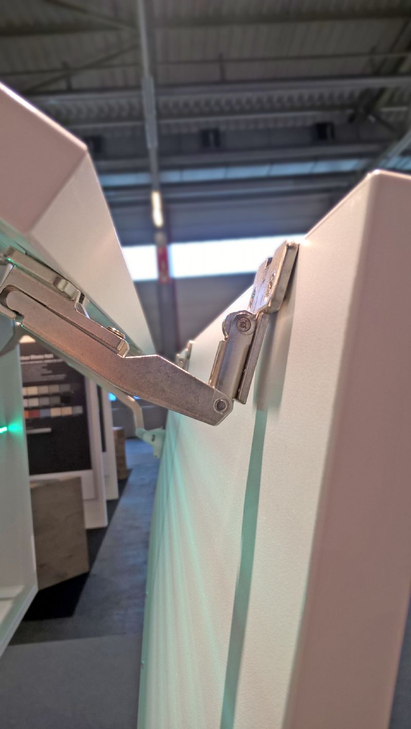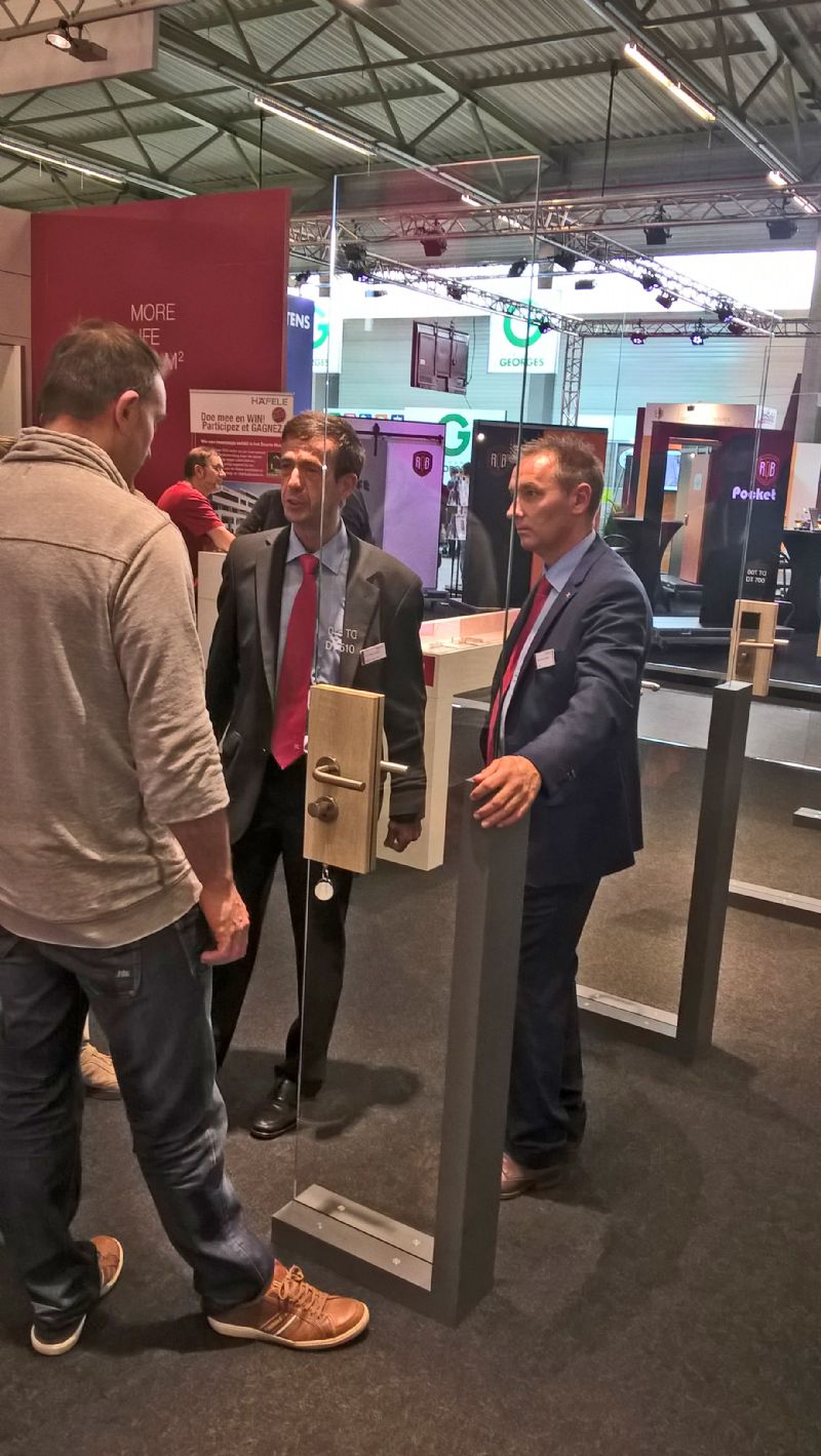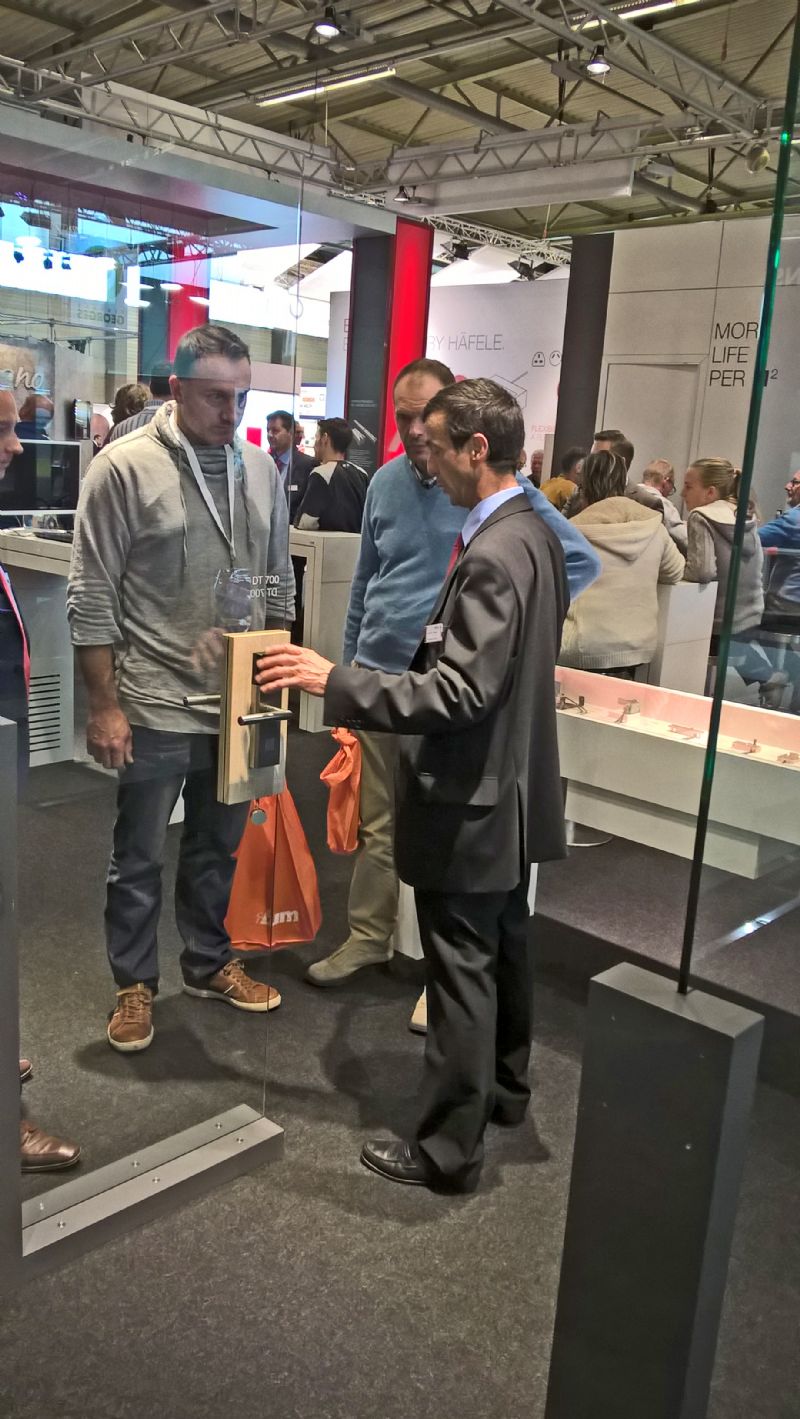 Häfele Belgium pakte op zijn stand uit met een waaier aan technologische highlights waaronder Dialock 2.0, een platform voor het toegangscontrolesysteem met Mifare-technologie. Daarnaast werden ook het Slido-schuifdeurbeslag met nieuwe, flexibel inzetbare schuifdeursystemen, het verticale schuifdeursysteem Kaskade en het opklapbare bed- en bureaubeslag Tavoletto extra in de kijker gezet. Verder kreeg de bezoeker een beter inzicht in de werking en troeven van het Finetta Spinfront-draaischuifdeurbeslag en de verschillende varianten van het klepbeslag Free. Die biedt ontwerpers meer vrijheid, bespaart plaats door het slanke design en is ten slotte eenvoudig en snel te monteren en te bedienen. Aan de hand van montagevideo's kreeg de bezoeker ook een beter inzicht in de werking en de verbeterde montage van de beslagen.