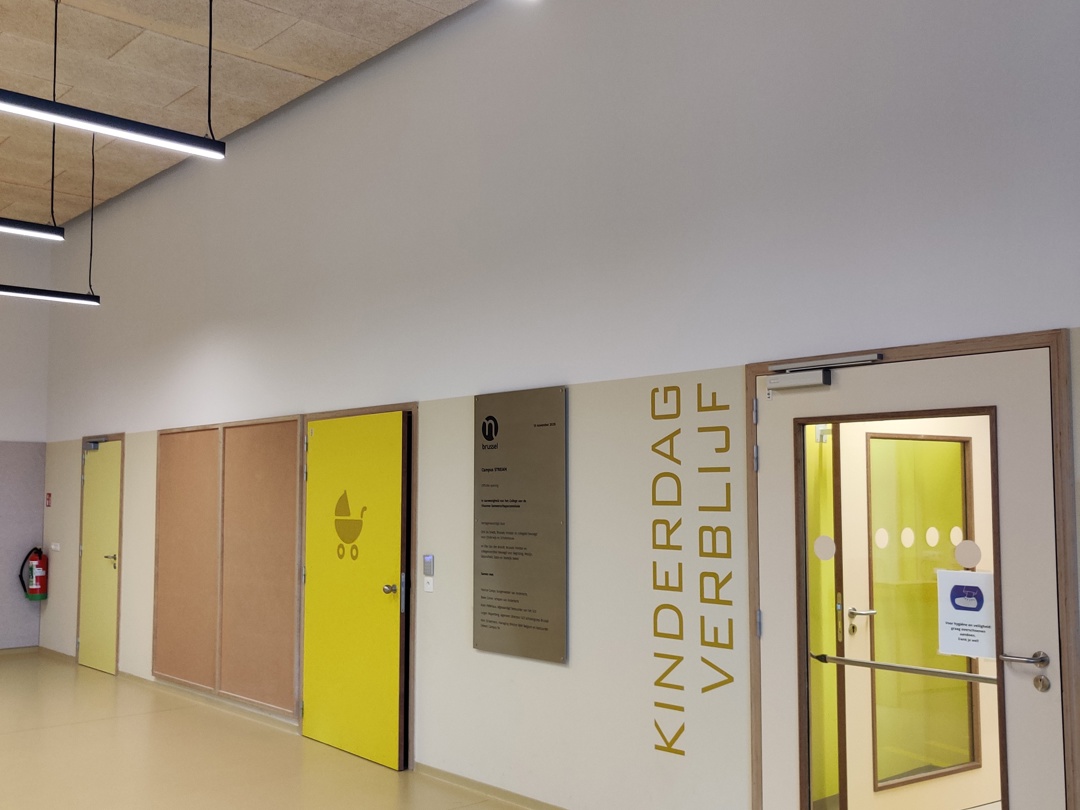 “Schoolgebouwen behoren tot de meest complexe projecten qua deurtechniek”, vertelt Joren Van Stappen. “Er zijn strikte eisen op vlak van brandveiligheid, vluchtwegen, dubbele en enkele deuren, en specifieke noden per gebruikersgroep. En elk schoolproject is bovendien anders. Bij deze kinderopvang kregen we bijvoorbeeld expliciet de vraag om een oplossing te voorzien waarbij de allerkleinsten niet met hun vingers tussen de deur konden komen vast te zitten.”