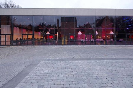 Het is ook een groen gebouw in de letterlijke betekenis van het woord doordat het is ingegraven in een heuvelwand waardoor het als het ware verdwijnt in het landschap. Aan de andere kant bevindt zich een grote glaspartij die uitzicht biedt op het plein van de oude stad. ’s Avonds komt dit decors eens zo goed tot zijn recht doordat het wordt aangelicht met de allernieuwste led-systemen van Philips waarin allerhande licht- en kleureffecten geïntegreerd werden.