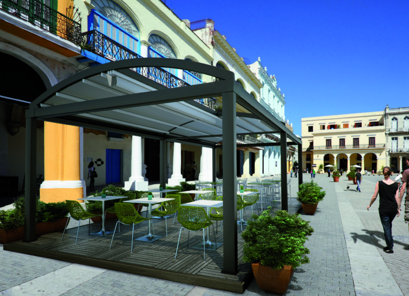 Een trapje hoger op de comfortladder staat model Opera. Bij dit model zijn geïntegreerde verticale windvaste screens mogelijk. De poten zijn uitgerust met de nodige opties om meteen of op een later tijdstip strakke, windvaste screens toe te voegen. Net als de Vision zijn er tal van opties: keuze uit alle RAL- en breed gamma structuurlakkleuren , zon- wind-, en regensensor, dimbare RGB-ledverlichting, glazen schuifwand, vaste wand met screendoek en verwarming. De Opera is ook standaard beschikbaar in wit.