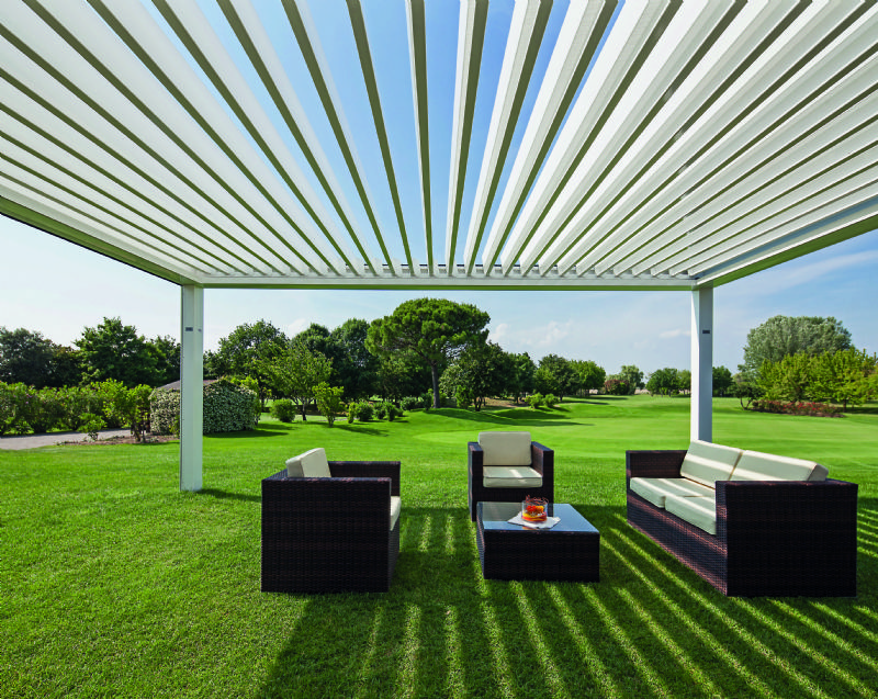 Het nieuwe instapmodel Vision is een stevige maar verfijnde aluminium constructie die het terras tot een buitenleefruimte maakt. De lamellenstand kan je via afstandbediening van 0° tot 140° naar wens regelen. Aanbouw, losstaand of een grote oppervlakte overspannen: de modulaire constructie kan in de lengte en de breedte oneindig worden uitgebreid. De Vision is standaard beschikbaar in wit, met als opties alle RAL- en breed gamma structuurlakkleuren, de zon- wind-, en regensensor, dimbare RGB-ledverlichting, glazen schuifwand, vaste wand met screendoek en verwarming.
