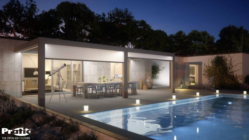 Anders dan lamellendaken kunnen vouwdaken helemaal open. Zo stem je met een druk op de knop het regen- en UV-bestendige dakdoek perfect af op de zonne-intensiteit of neerslag: dicht, halfopen of helemaal open voor overvloedig zonlicht. Op Batibouw werd de nieuwe architecturale PATiO RAM al voorgesteld, met zijn gebogen dakstructuur en schuine voetpalen. Andere nieuwkomer is de RAM Class (met geïntegreerde dakgoot) en het vrijstaande model PATiO MODULO SKY. Met zijn doek voor zeer grote oppervlakten ideaal voor commerciële ruimten en horeca-oplossingen. Ook werd op Batibouw de mogelijkheid tot dimbare RGB-ledverlichting geïntegreerd in de doekprofielen geïntroduceerd. Deze optie is toepasbaar op alle Patio-modellen.