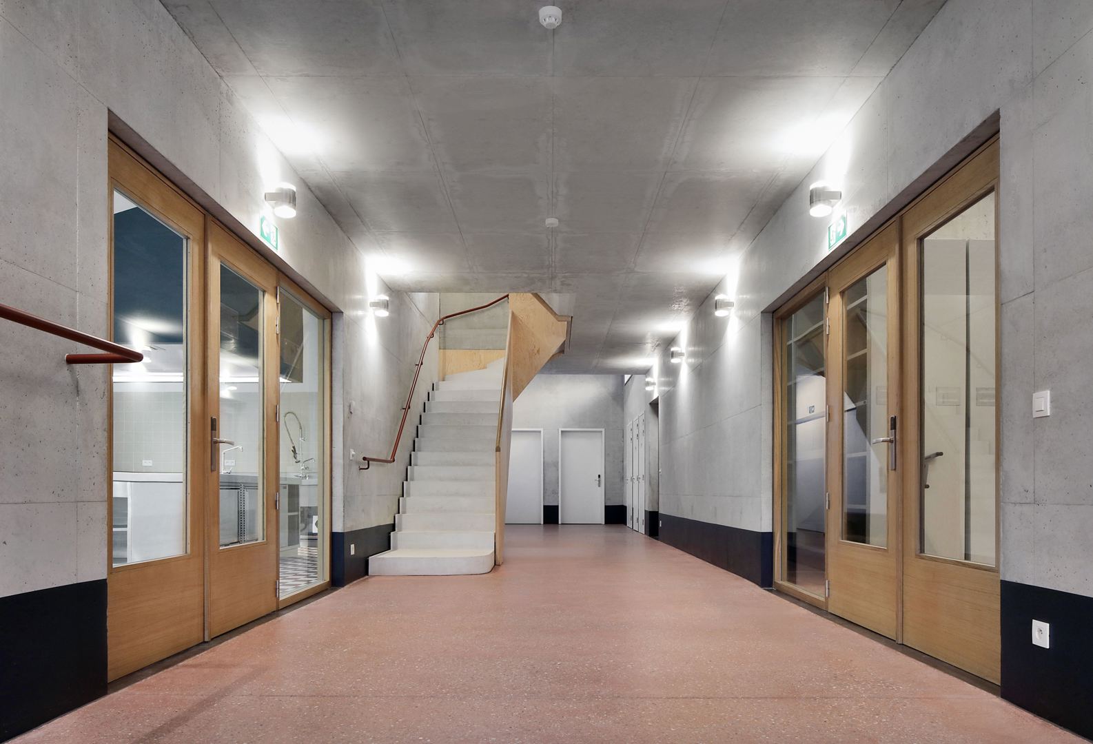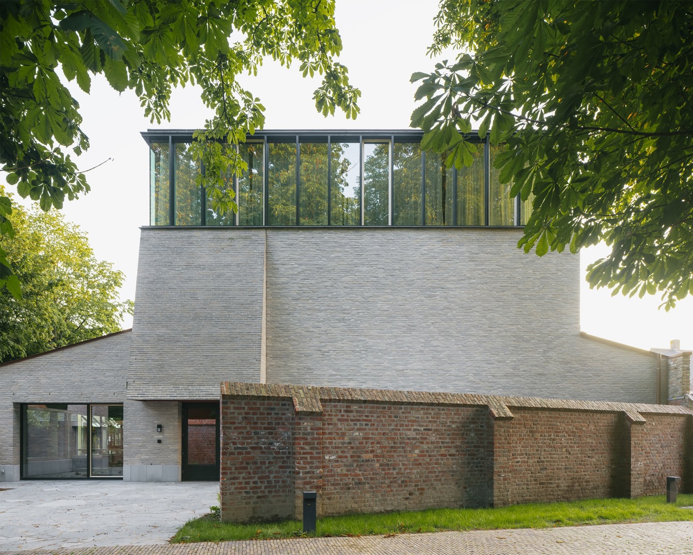 Op de bovenste verdieping, bovenop het dubbelhoge depot, zijn de kantoren, de bibliotheek en de vergaderzaal ondergebracht. Die ruimtes vormen het sluitstuk van de route en fungeren als de bekroning van het gebouw. Vanuit dat penthouse heeft men een panoramisch overzicht op de volledige museumsite, een ervaring die zowel indrukwekkend als rustgevend is. Of het nu in de ochtendzon is of op een donkere winteravond, het uitkijkpunt biedt een uitzonderlijke plek voor ontvangst van gasten of voor ontspanning.
