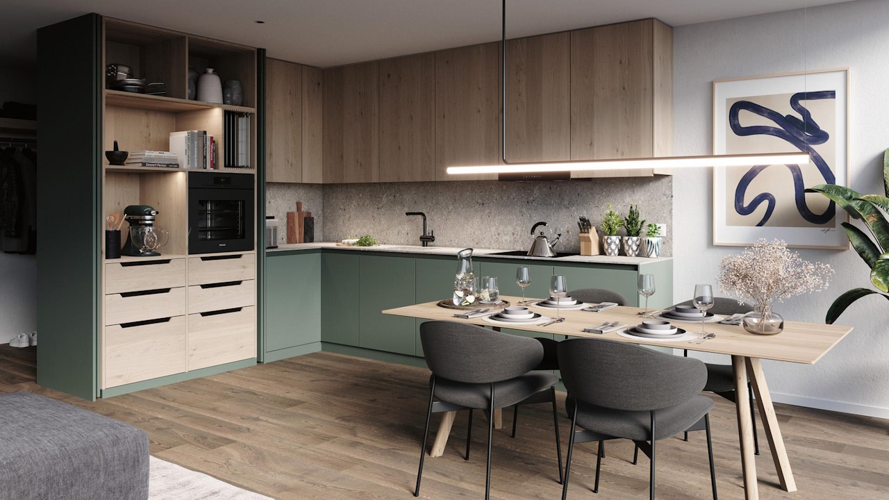 Met het Hawa Concepta III systeem van Häfele transformeer je elke ruimte. Het systeem laat deuren toe om 90° te draaien en zijwaarts in meubelkorpussen of muuruitsparingen schuiven, waardoor achterliggende keukenbladen, droog-/wasmachines, thuiskantoren of garderobekasten gemakkelijk toegankelijk worden. De deuren, die met een lichte aanraking te bedienen zijn, sluiten naadloos en vormen een elegante, vlakke voorkant wanneer ze gesloten zijn.
