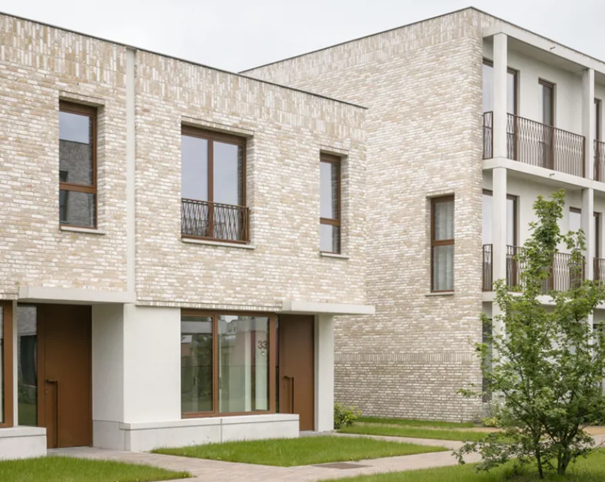In Oud-Turnhout wordt met Hof ter Dorpe een nieuw woonproject gerealiseerd dat moderne architectuur combineert met de warme uitstraling van een dorpskern. Het ontwerp van a2o architecten zet sterk in op samenhang en herkenbaarheid. Een sleutelrol is weggelegd voor de gevelsteen Oud Brugghe uit de Rustique-collectie van Vande Moortel, die met zijn genuanceerde geelgrijze tinten perfect aansluit bij de lokale context.