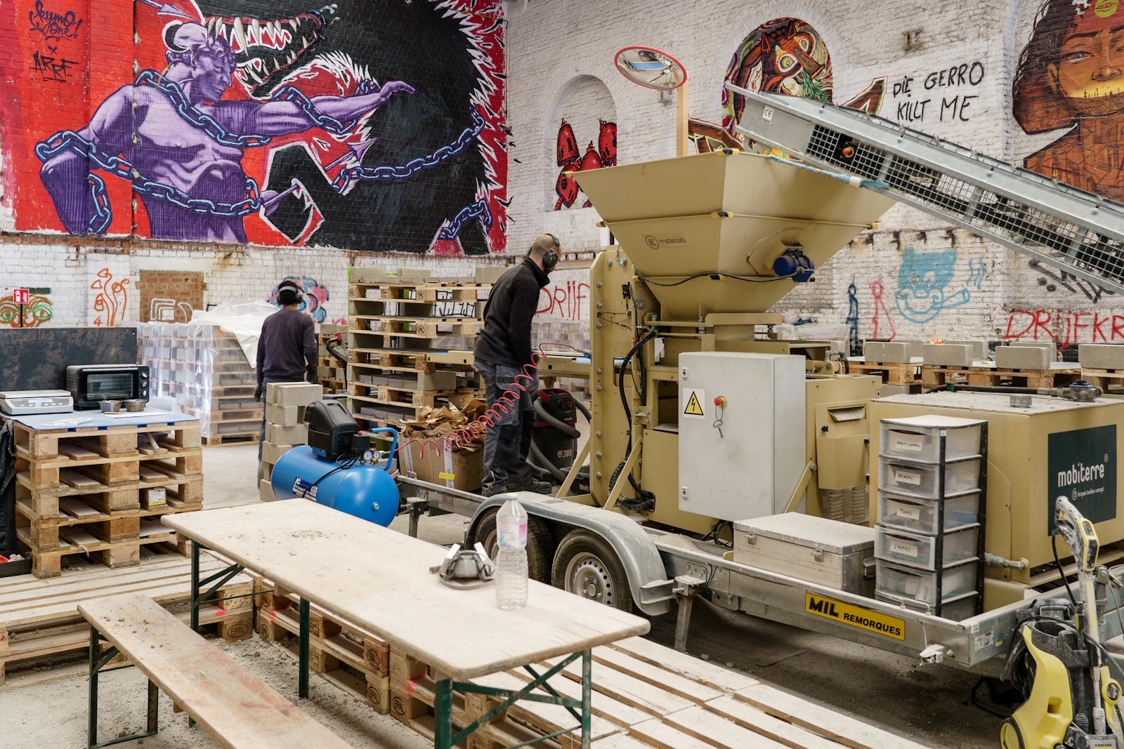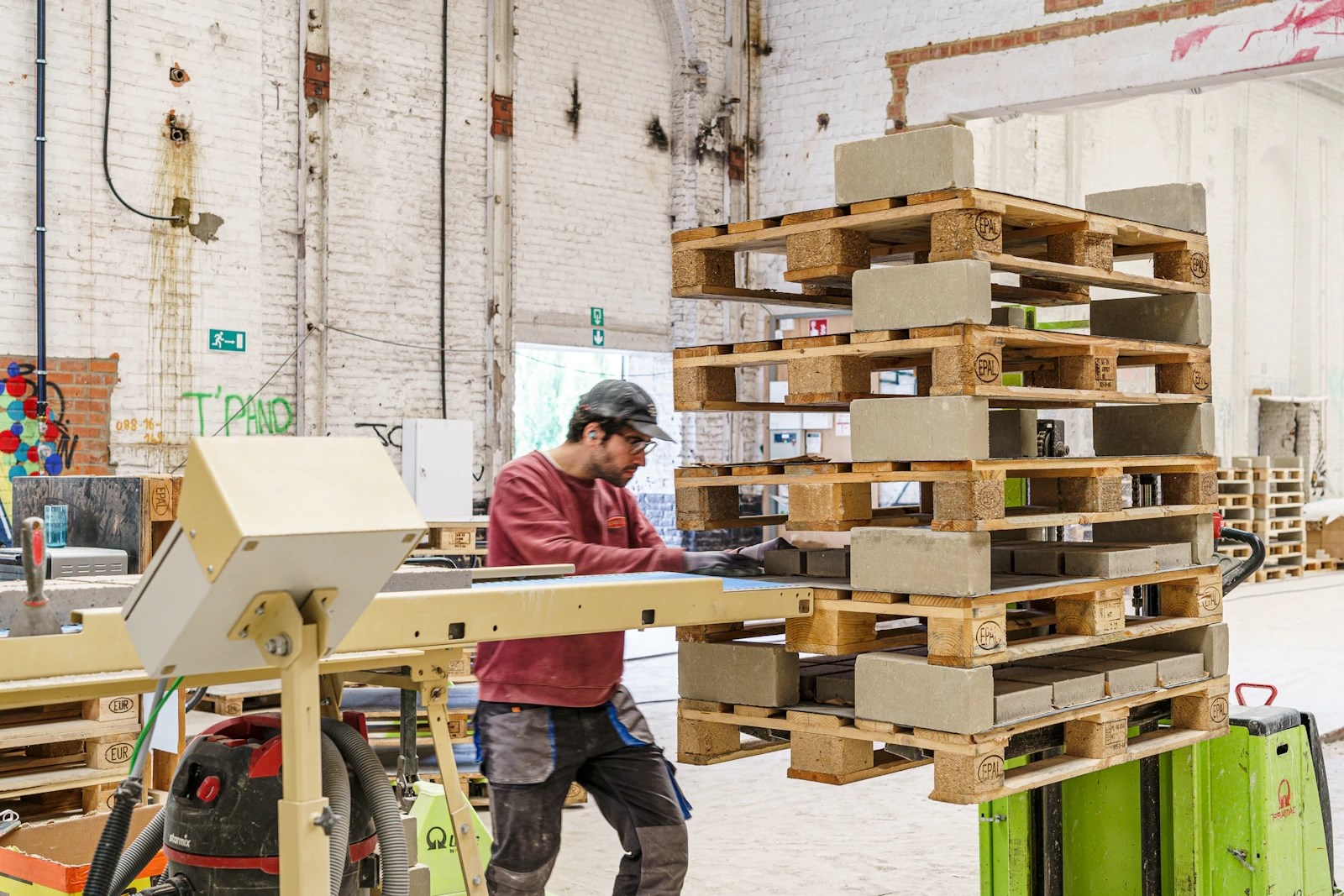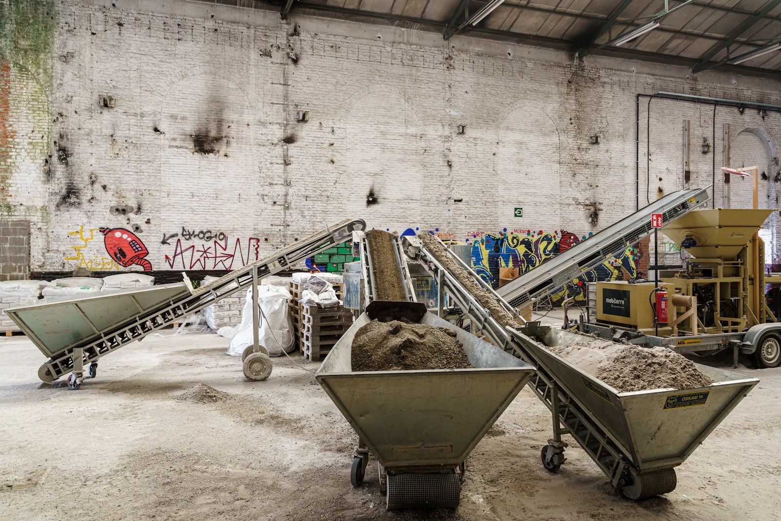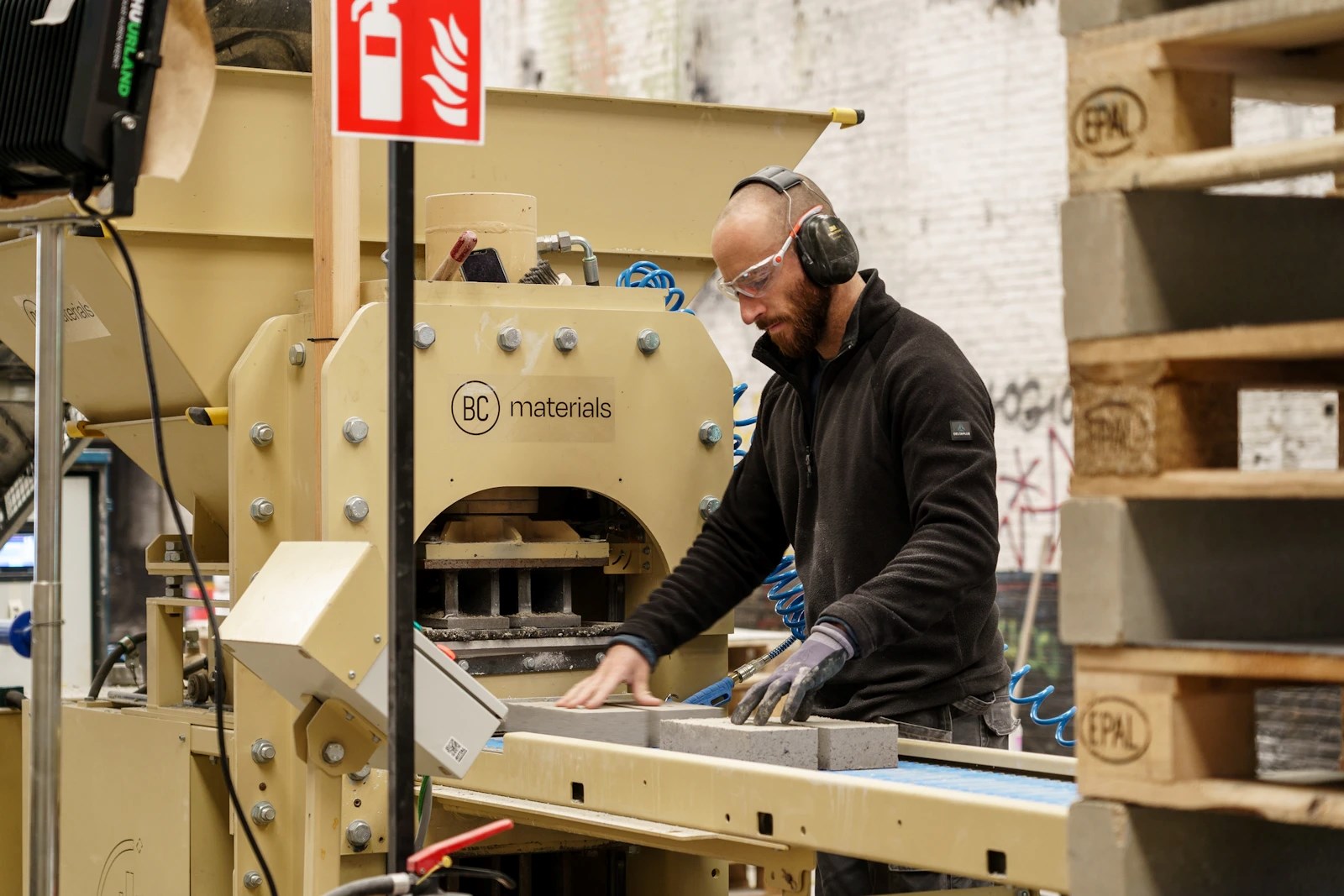 BC Materials: “Tijdens het ontwerpproces van de nieuwe vleugel DING voor Design Museum Gent stonden duurzaamheid en circulariteit sowieso centraal. Vertrekkend vanuit het idee dat afvalreststromen volwaardige grondstoffen zijn, was de sprong naar bakstenen met gebruik van een aandeel afval niet echt groot. Toen bleek dat er een alternatief bestond voor het afbakken van stenen, werkten we op dat denkspoor verder. Door kalk als grondstof te gebruiken, kan de steen uitharden via een natuurlijk chemisch proces dat carbonatatie heet. Dat betekent een enorme energiebesparing.”