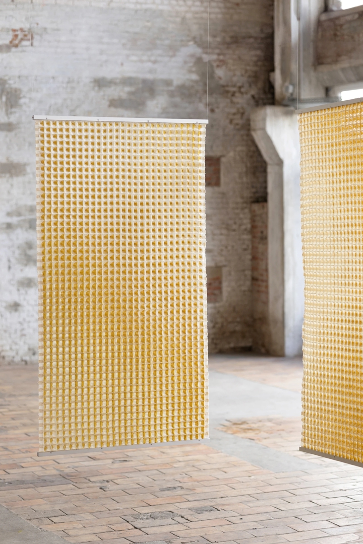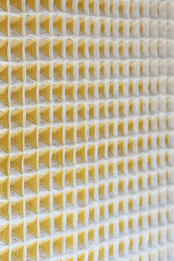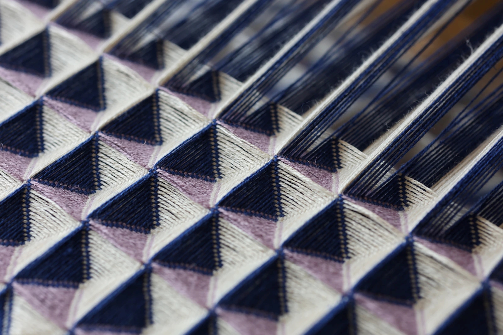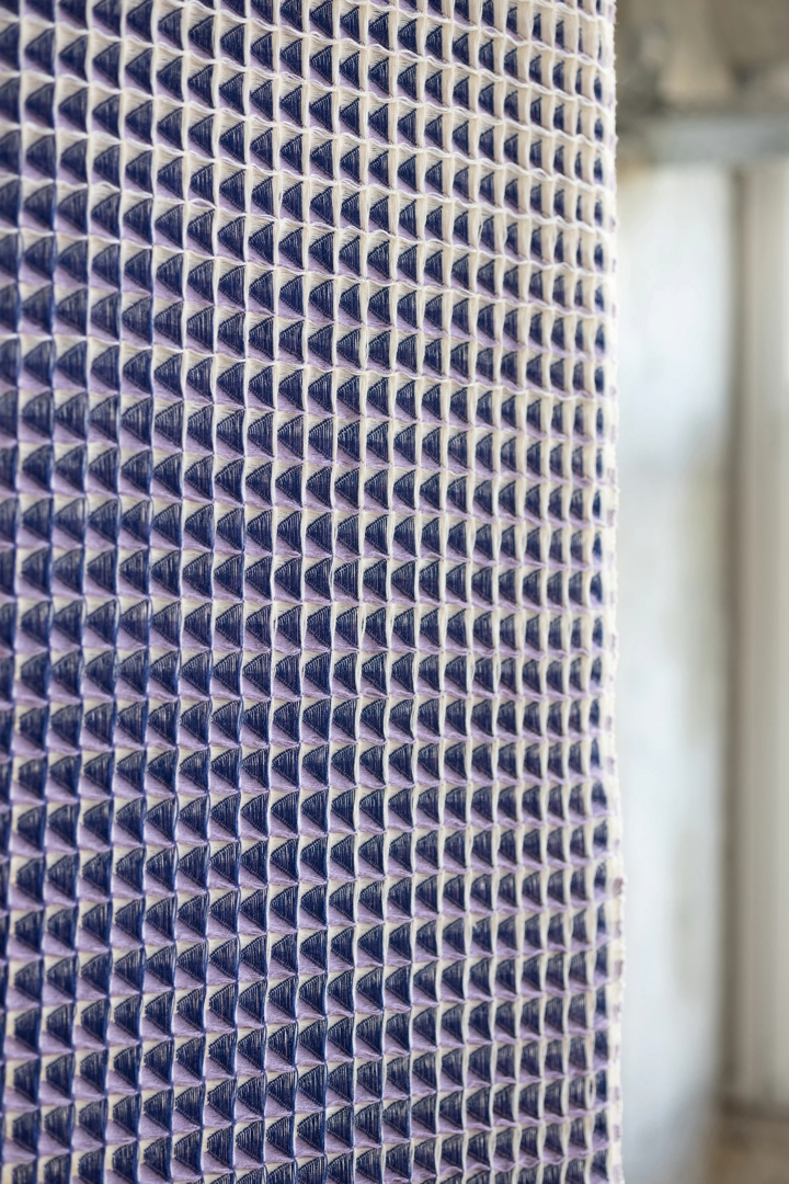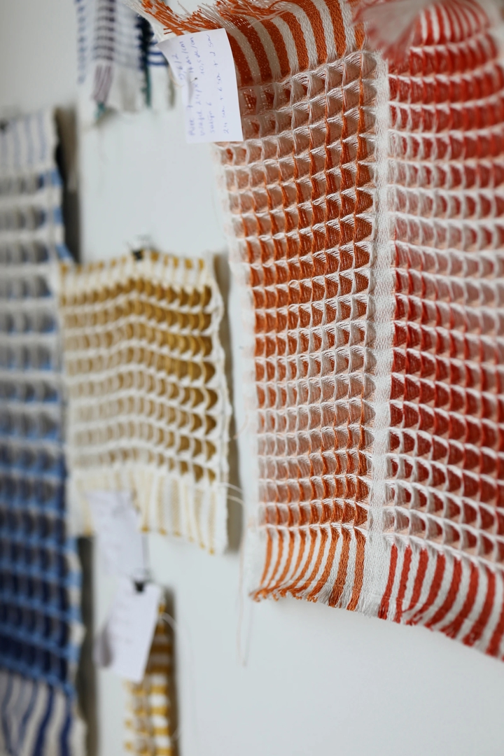 Het fijne aan dit project is dat ik eindeloos kan variëren in kleur, patroon en schaal. Momenteel werk ik aan een reeks kleinere ontwerpen voor aan de wand, terwijl de grotere werken op maat worden geweven. Ik hoop deze weefsels binnenkort te kunnen integreren in enkele inspirerende interieurprojecten.