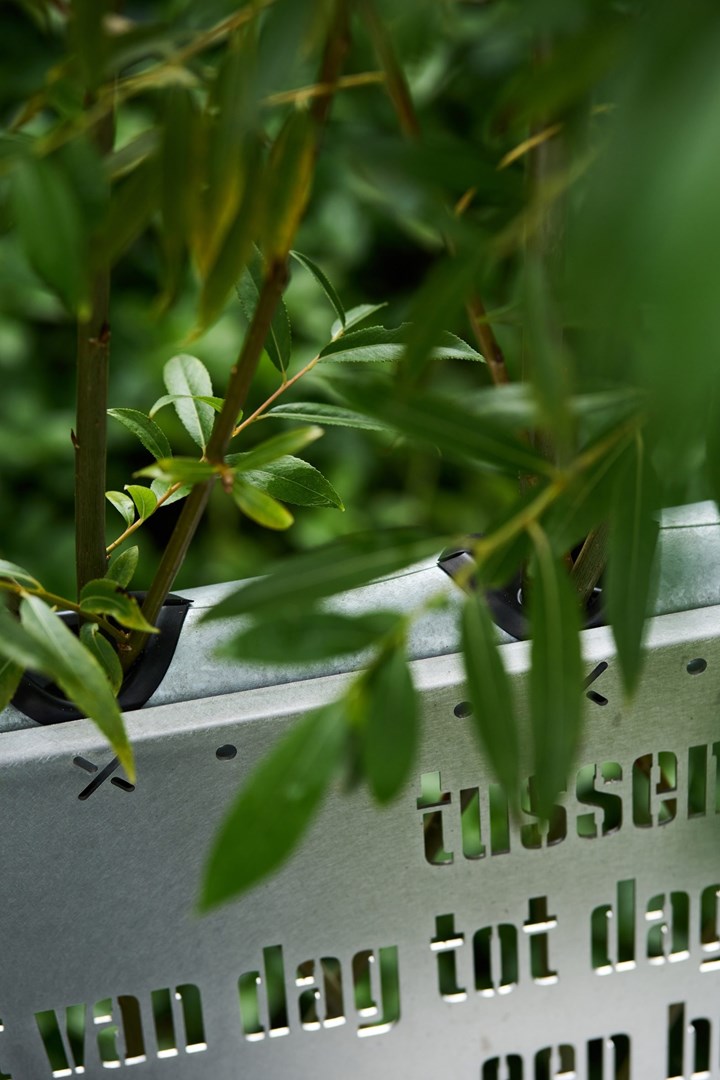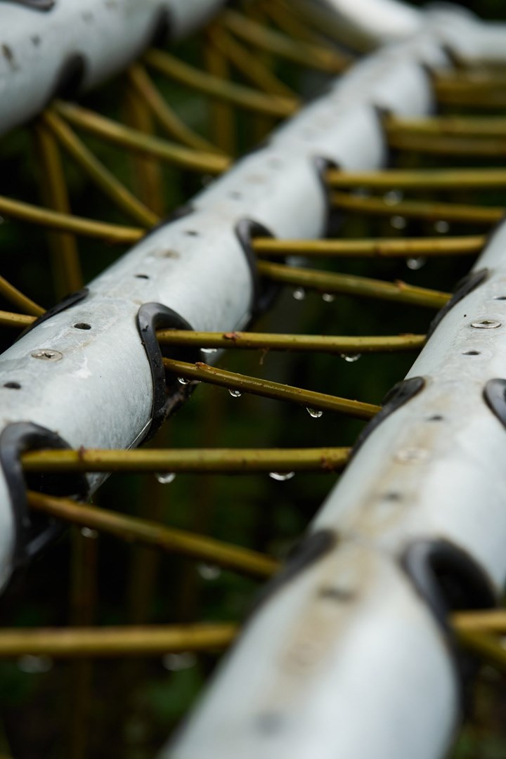 In eerste instantie wordt er een metalen hoes bovenop de bekisting geplaatst om vanaf dag één een functionele bank te creëren. Tegelijkertijd worden de wilgen beschermd tijdens hun vroege groeifase en worden ongewenste zijtakken afgesnoeid.