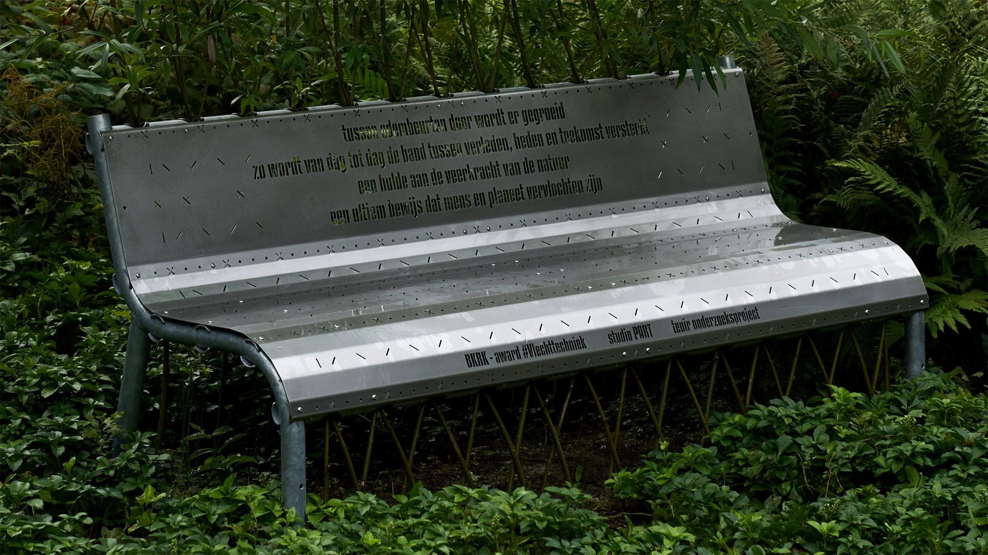Het duo voelde zich aangetrokken tot dit traditionele ambacht vanwege de potentiële toepassingen in openbare buitenarchitectuur en omdat het “laat zien dat mens en natuur met elkaar verweven zijn”, aldus Van Mulders. “De techniek heeft de potentie om een volledig groen, onverhard en zelfs CO2-negatief object te creëren,” voegt de ontwerper toe. “We wilden een bank maken met deze techniek omdat de publieke aanwezigheid en het gebruik zouden helpen om de filosofie en schoonheid achter het werken met levende materialen te verspreiden.”