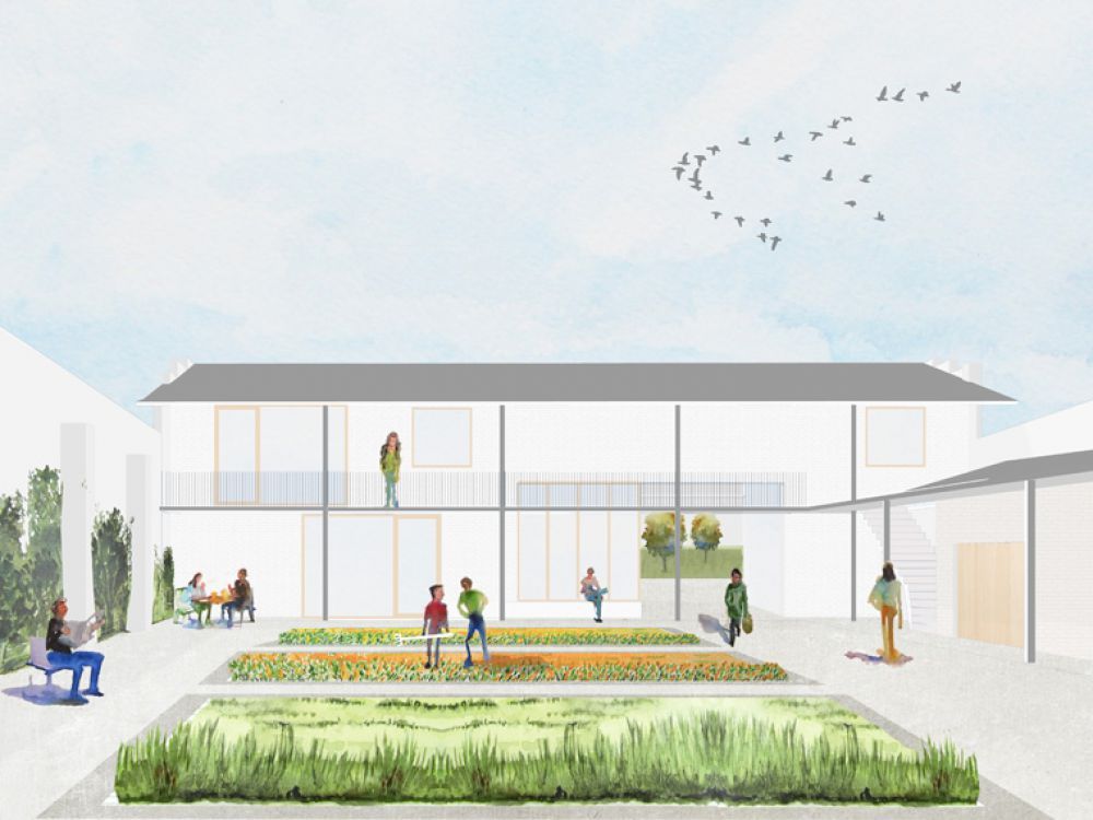 Het ontwerp vormt de bestaande vakwerkloods om tot een geheel van verschillende polyvalente ruimtes die de buurtbewoners kunnen gebruiken. De ateliers en de grotere zalen lenen zich tot allerlei doeleinden zoals drinkgelegenheid, schildersateliers, fietsenherstelplaats, yoga-ruimte, ...