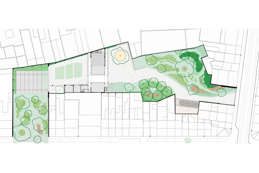 De toegangen naar de site aan de H. Bertolfstraat en de Hoveniersstraat worden volledig groen en open. Vanaf de Hoveniersstraat bereikt men via de buurttuin de loods. Bomen, bessenstruiken en bloemenrijke grasvelden wisselen er elkaar af. Hier en daar zorgt het ontwerp voor grotere bomen met zitplekken onder de kruinen.