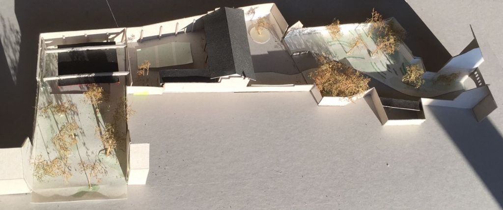 Vanuit de loods hebben de bezoekers een overzicht over een groot deel van het park. Aanvullend komt aan de zijde van de Hilarius Bertolfstraat een grote, heldere, open luifel die plaats kan bieden voor activiteiten die minder nood hebben aan verwarming zoals buurtfeesten, marktjes, etc.
