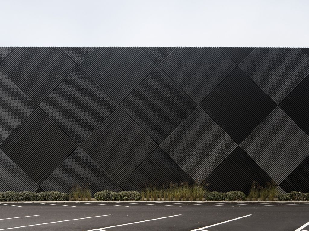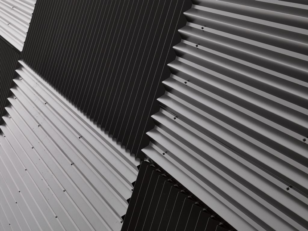 De puntprofielen met een hoogte van 50 mm zijn gemonteerd in twee verschillende richtingen, wat resulteert in een dambordeffect. Opmerkelijk: de platen bestaan uit exact hetzelfde materiaal en het patroon en het kleurverschil wordt puur gecreëerd door de wisselende montagerichting. De fijnheid van de gewoven gevel versus de robuustheid van het extreem harde materiaal zorgt daarenboven voor een extra architecturaal spanningsveld.