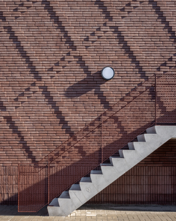 Het kruisvormige metselverband speelt een sleutelrol in de perceptie van het gebouw. Door het ritme en de textuur van de baksteen krijgt de gevel een fijnmazige schaal die aansluit bij de beleving van de bewoners. Het detail verzacht de omvang van het geheel en maakt het gebouw tactiel en herkenbaar.