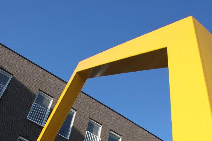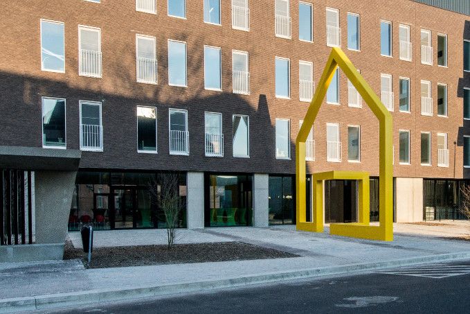 Recent legde kunstenares Inge Van Gheel de laatste hand aan Het Gele Huis. Dat kunstwerk maakt deel uit van de nieuwbouw van woonzorgcentrum Edouard Remy van OCMW Leuven dat begin februari officieel geopend wordt.