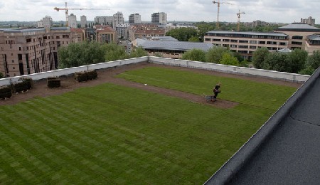 Ten vierde beschermt het groendak het dakmembraan, dat door de natuurlijke begroeiing veel meer bestand is tegen uv-belasting, extreme temperatuurschommelingen en schadelijke weersinvloeden.