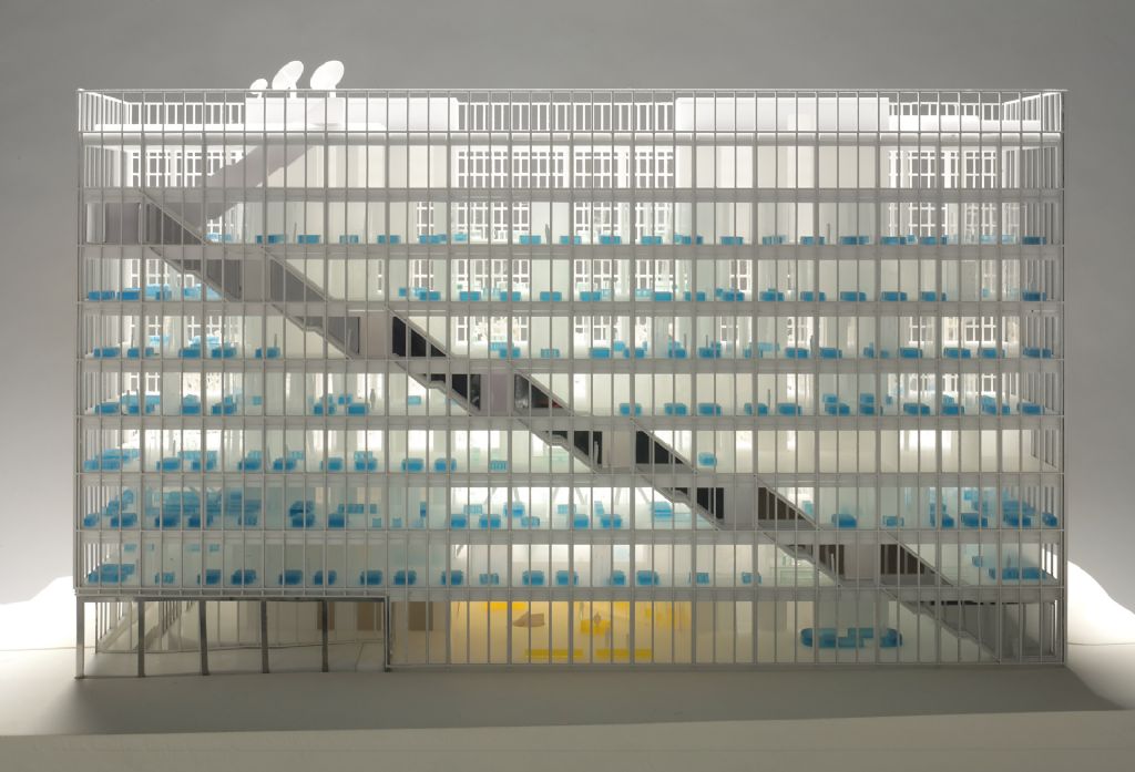 De relatie tussen het gebouw en de openbare ruimte wordt maximaal geactiveerd door de grote transparante glasvlakken en de geveltrap die alle vloerniveaus met elkaar verbindt.