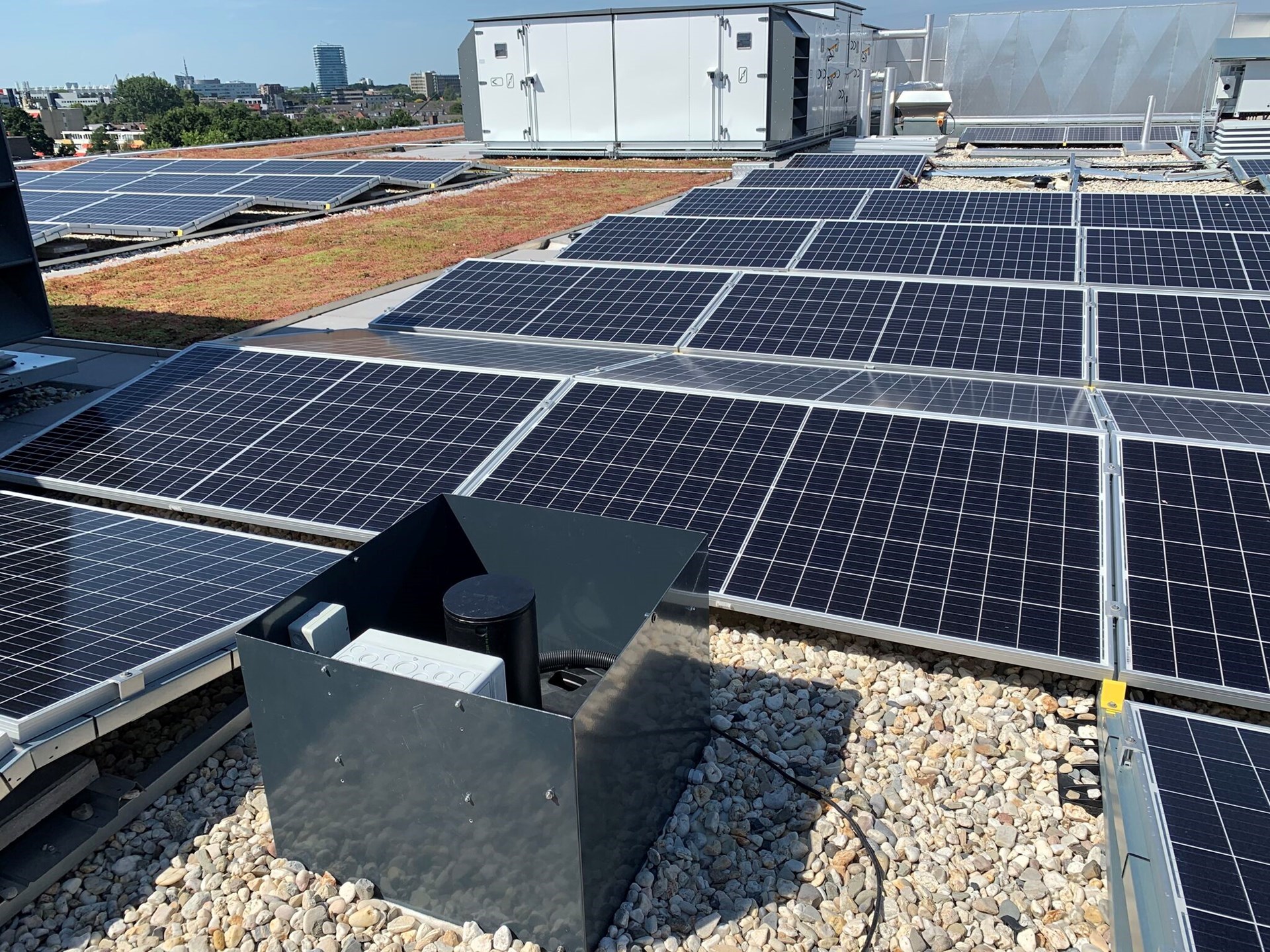 Het project Wonderwoods in Utrecht illustreert de geavanceerde mogelijkheden van het Optigrün Smart Hub netwerk. Sensoren monitoren de vochtigheid van het substraat om te zorgen voor optimale bewatering van de beplanting, terwijl ook wateropvang en -recycling efficiënt worden beheerd. Dit systeem zorgt ervoor dat geen druppel water verspild wordt, zelfs in tijden van neerslag of droogte.