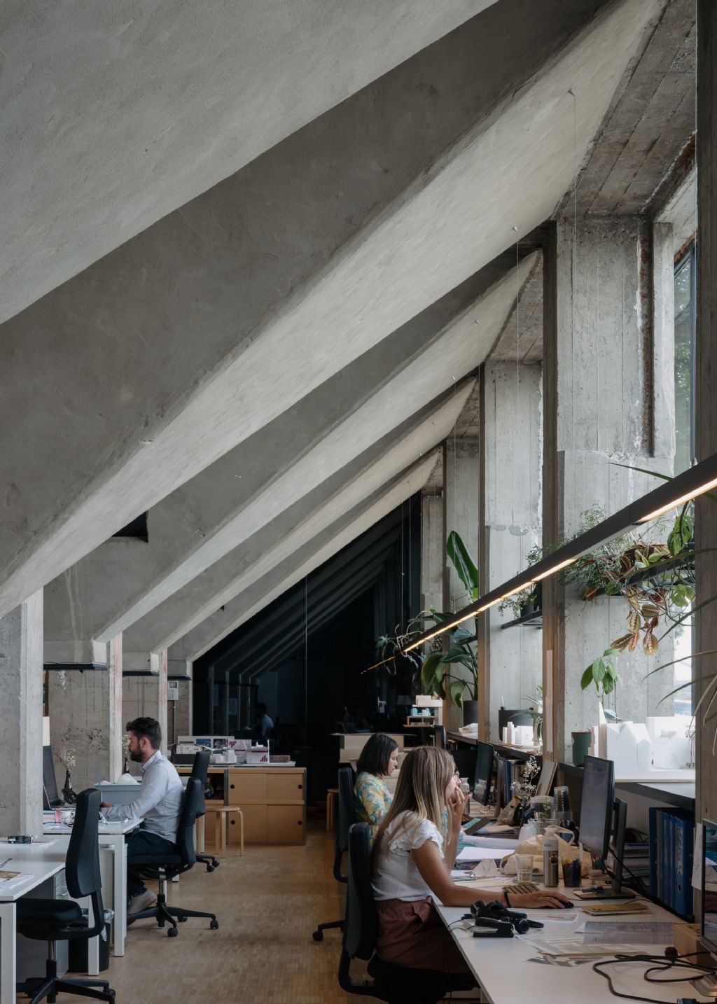 Robbrecht en Daem architecten verbouwden een houtopslagplaats uit de jaren zeventig tot architectuurstudio’s. Deze nieuwe ‘werkplaats’ omvat hun eigen kantoor en dat van Marie-José Van Hee architecten. De voormalige werkvloer werd omgevormd tot een buitenruimte met een arboretum, zwemvijver en grote vrije ruimte voor performances en tentoonstellingen. Sinds het ontstaan van het architectenbureau in 1975 betrekken Paul Robbrecht, Hilde Daem en later ook Johannes Robbrecht vaak kunst bij de architectuur, wat intense samenwerkingen met beeldende kunstenaars meebracht. Die relatie uit zich ook zichtbaar in hun bureau.