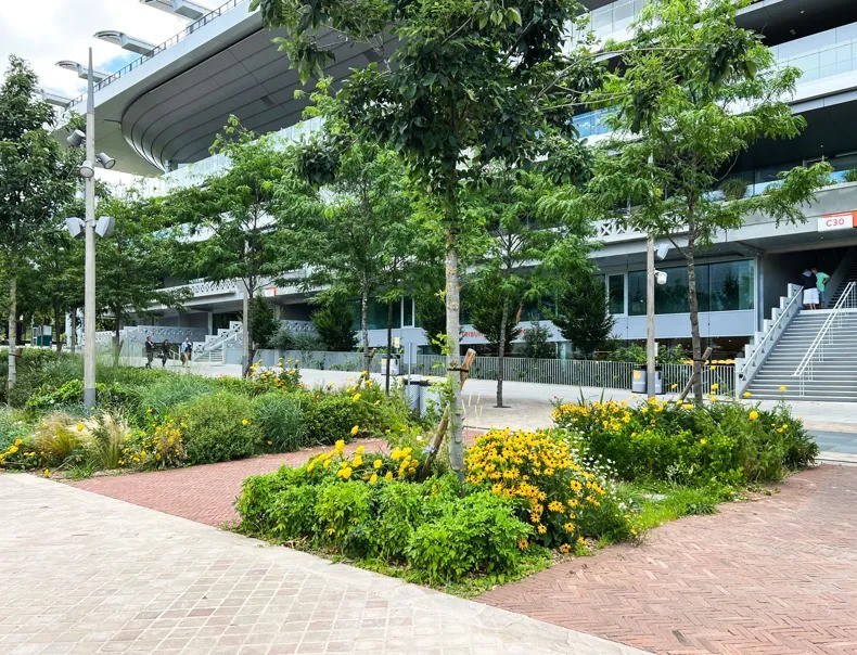 Het doel van de modernisatie van de Place des Mousquetaires was het herstel van het federale paviljoen naar zijn oorspronkelijke staat. Er is één hectare groene ruimte gecreëerd waar de kleiklinkers gebruikt werden voor de verharde paden, net vóór de beroemde Philippe Chatrier court. Deze plaats biedt niet alleen een visueel aantrekkelijk landschap, maar ook functionele paden die bezoekers door het groene terrein leiden. De grote 'Pelouse des Mousquetaires' is nu een aangelegde groene zone die zowel spelers als toeschouwers uitnodigt om te genieten van een groene oase midden in de stad.
