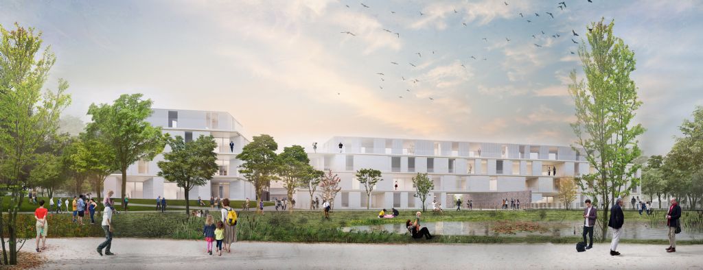 ION & PMV slaan ook de handen in elkaar om drie nieuwbouwvleugels te realiseren. Er komt een wooncomplex langs de Duisburgsesteenweg (projecttitel De Poort) dat als poort wil fungeren voor het centrum en dat aansluit met de Orangerie en het halve hoefijzergebouw. De gelijkvloerse verdieping van het gebouw Poort zal kantoren, horeca en kleinhandel herbergen. Tussen de Orangerie en de nieuwe vijver komt de inplanting van een nieuwe woonvleugel (projecttitel Het Plein). De derde woonvleugel (projecttitel Het Park) sluit aan bij het parkbos en kijkt ook uit op de tweede woonvleugel. Er zijn in het totaal zo’n 100 woonentiteiten voorzien die beantwoorden aan alle mogelijke gezinstypologieën. Er komen bovendien levensbestendige woningen met rolstoeltoegankelijke faciliteiten voor wie een dagje ouder wordt of een lichte fysieke beperking heeft.