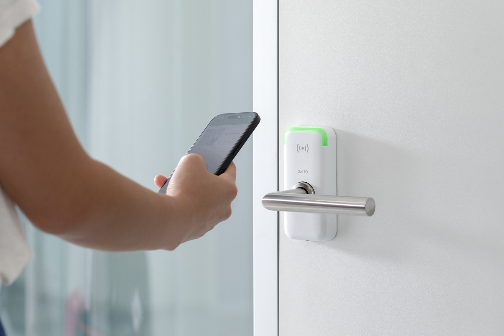 De oplossing: integratie van Salto Mobile Key in de “Roamer X”-app. “Deze app laat toe om ruimtes te reserveren, verlichting en temperatuur te bedienen, en dankzij de integratie kunnen gebruikers er via hun smartphone dus ook deuren mee openen,” aldus Gilen. “Dat bespaart ons veel werk én kosten: we hoeven geen fysieke toegangskaarten meer aan te maken.”