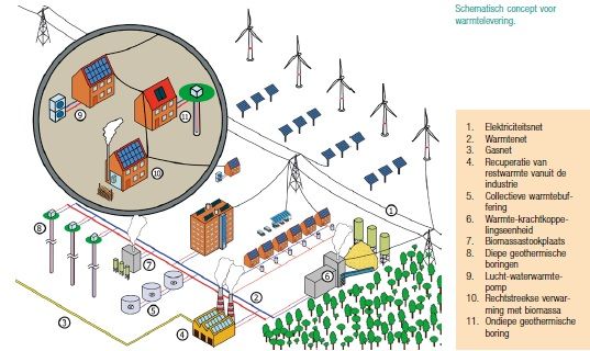 Het risico op klimaatopwarming vormt een bedreiging voor het fragiele evenwicht van ons ecosysteem en moet dus op mondiaal niveau aangepakt worden. Hiertoe dient de uitstoot van broeikasgassen (vooral CO2), die deels gerelateerd is aan het energieverbruik van onze gebouwen, verminderd te worden. Diverse studies gaan er dan ook van uit dat de meeste gebouwen tegen 2050 energieneutraal of zelfs energiepositief zullen zijn door het terugdringen van hun energiebehoeften en het veelvuldige gebruik van hernieuwbare energie. In dit WTCB-artikel worden er een aantal scenario's voorgesteld waarbij de warmtebehoeften tegen 2050 volledig gedekt zouden kunnen worden door hernieuwbare energie. Het WTCB bekijkt hiervoor eerst de energieproductie en de distributienetten en nadien worden de gebouwen en de installaties zelf onder de loep genomen.
