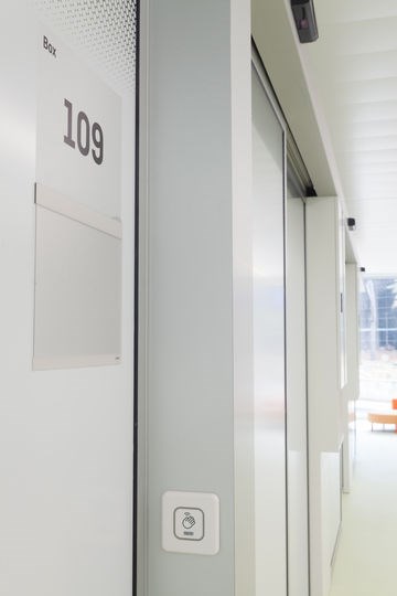 Het hart van het nieuwe centrum, waar zich de operatiekamers, röntgenkamers en de speciale ruimte voor immunosuppressieve patiënten bevinden, is uitgerust met bijzonder hygiënische deuren en het automatische lineaire schuifdeursysteem Powerdrive PL-HT dat speciaal werd ontworpen voor grote en zware deuren in ruimtes met verhoogde hygiëne-eisen. Ze zijn barrièrevrij, contactarm en gemakkelijk schoon te maken, waardoor ze ideaal zijn voor bijzonder kwetsbare omgevingen. Er wordt gezorgd voor een hermetische afsluiting door de vleugel te laten zakken en tegen de kozijnconstructie te drukken. Bovendien vermindert een omtrekafdichtingssysteem met afdichtingshoeken de luchtdoorlatendheid van het gesloten schuifdeursysteem.