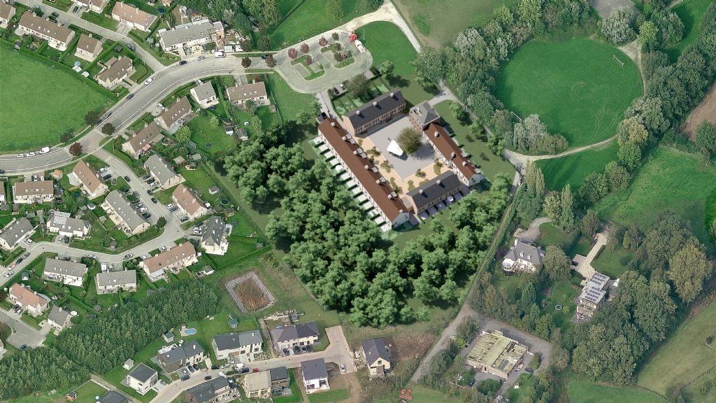 De nieuwe woonvleugels zijn overlappend gepositioneerd met de bestaande vleugels, waardoor de nieuwbouw eenzelfde inpassing zal kennen als de bestaande hoeve. Door deze inplanting ter hoogte van de huidige stallingen zal de nieuwbouw zich op gelijkaardige wijze verhouden ten opzichte van haar omgeving.
