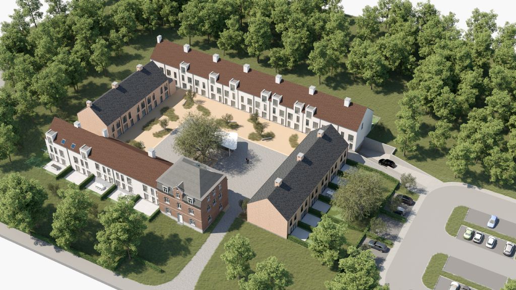 Er wordt een beleving op het binnenerf gecreëerd: door er de kern van het project van te maken waar alle woningen rechtstreeks op uitgeven krijgt het binnenerf een bruisend karakter. Het omliggende terrein wordt gemeenschappelijk en zal blijven dienen om de vierkantshoeve landschappelijk in te passen. Dit wordt versterkt door de aanleg van een hoogstamboomgaard alsook een boskant in het verlengde van een aangrenzende groencorridor.