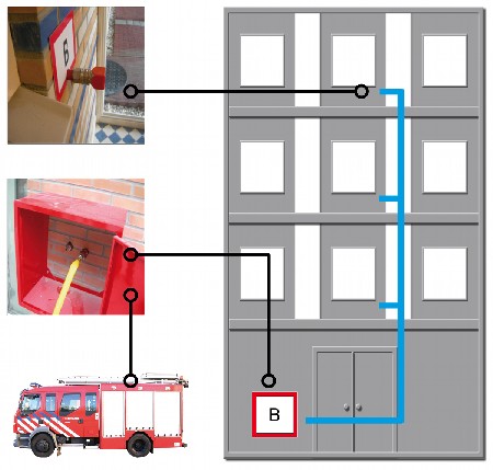 Werkingsprincipe van het hoge druk droge blusleidingsysteem.