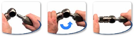 De vernieuwde knikkoppeling kan eenvoudig aan- of afgekoppeld worden, zonder de leiding eerst drukvrij te maken.
