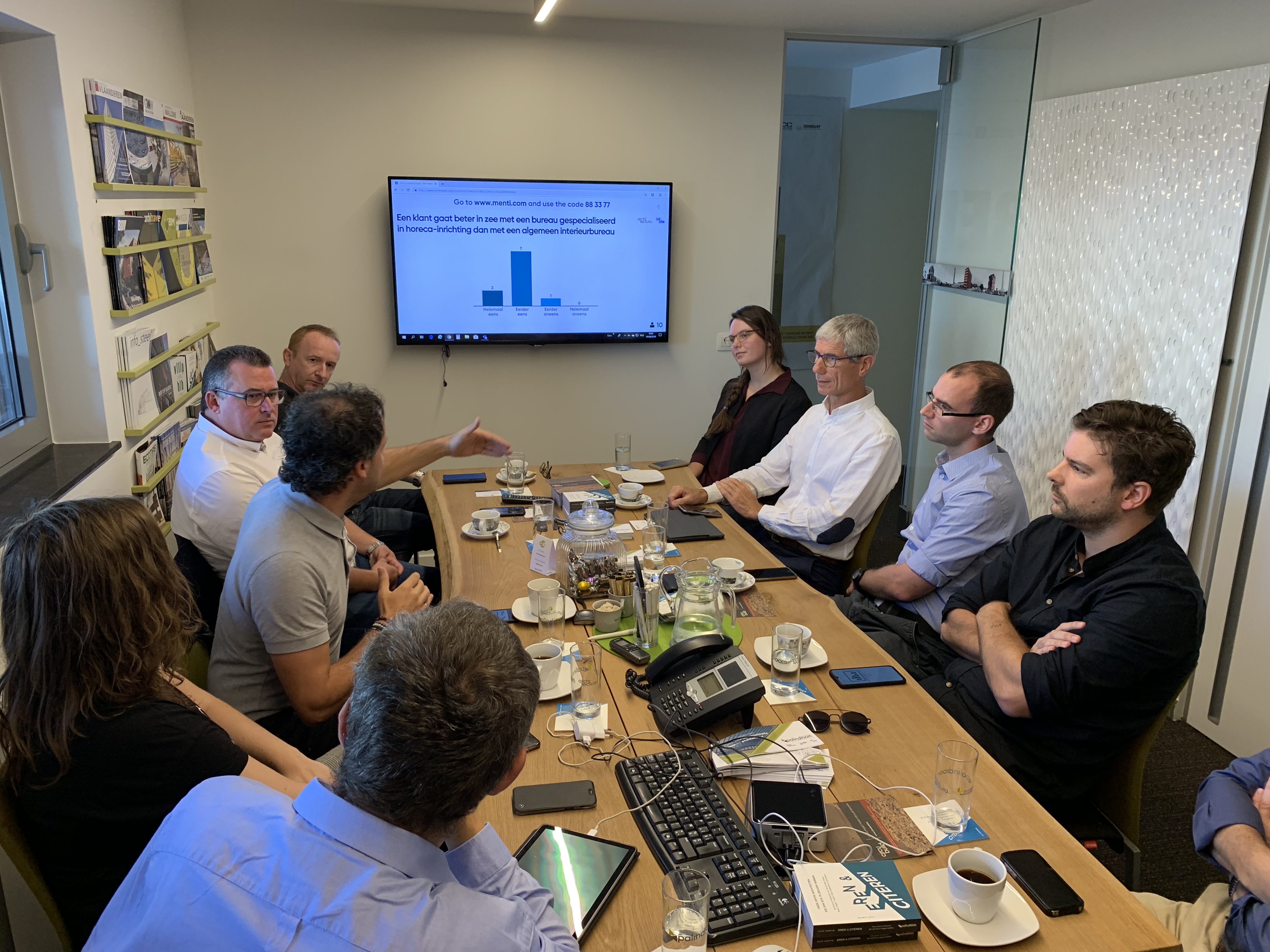 - Een klant gaat beter in zee met een bureau gespecialiseerd in horeca-inrichting dan met een algemeen interieurbureau: helemaal eens: 2, eerder eens: 7, eerder oneens: 1, helemaal oneens: 0