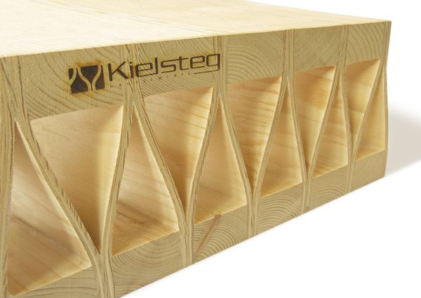 Een nieuw product voor Korlam is Kielsteg, een dragend vloer- of dak element. Dat bestaat uit een boven- en onderlaag uit hout met daartussen een web van OSB of multiplex. Hierdoor kan het vrijdragende overspanning tot 27 meter en uitkragingen tot 10 meter aan.