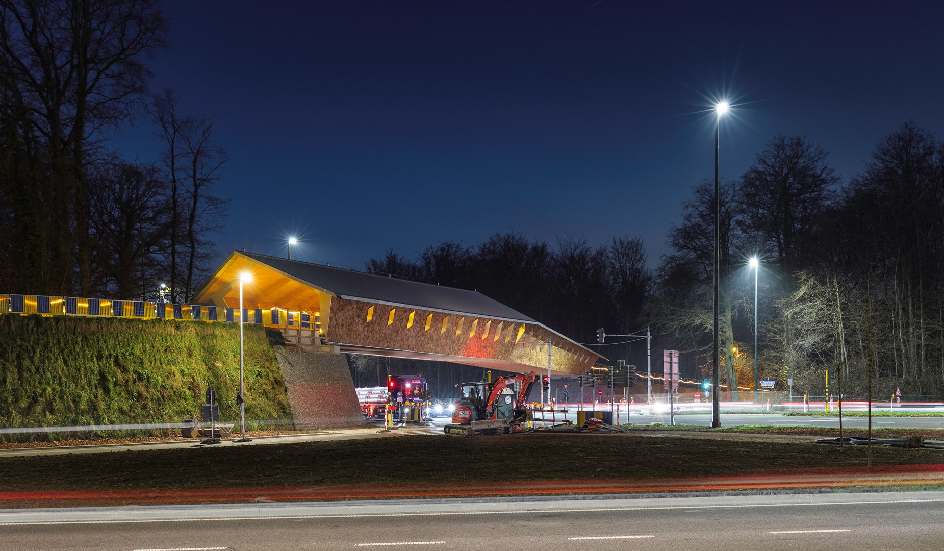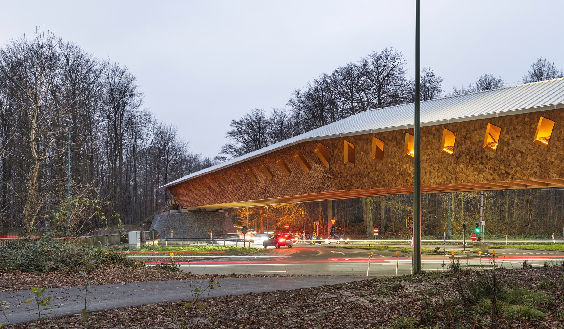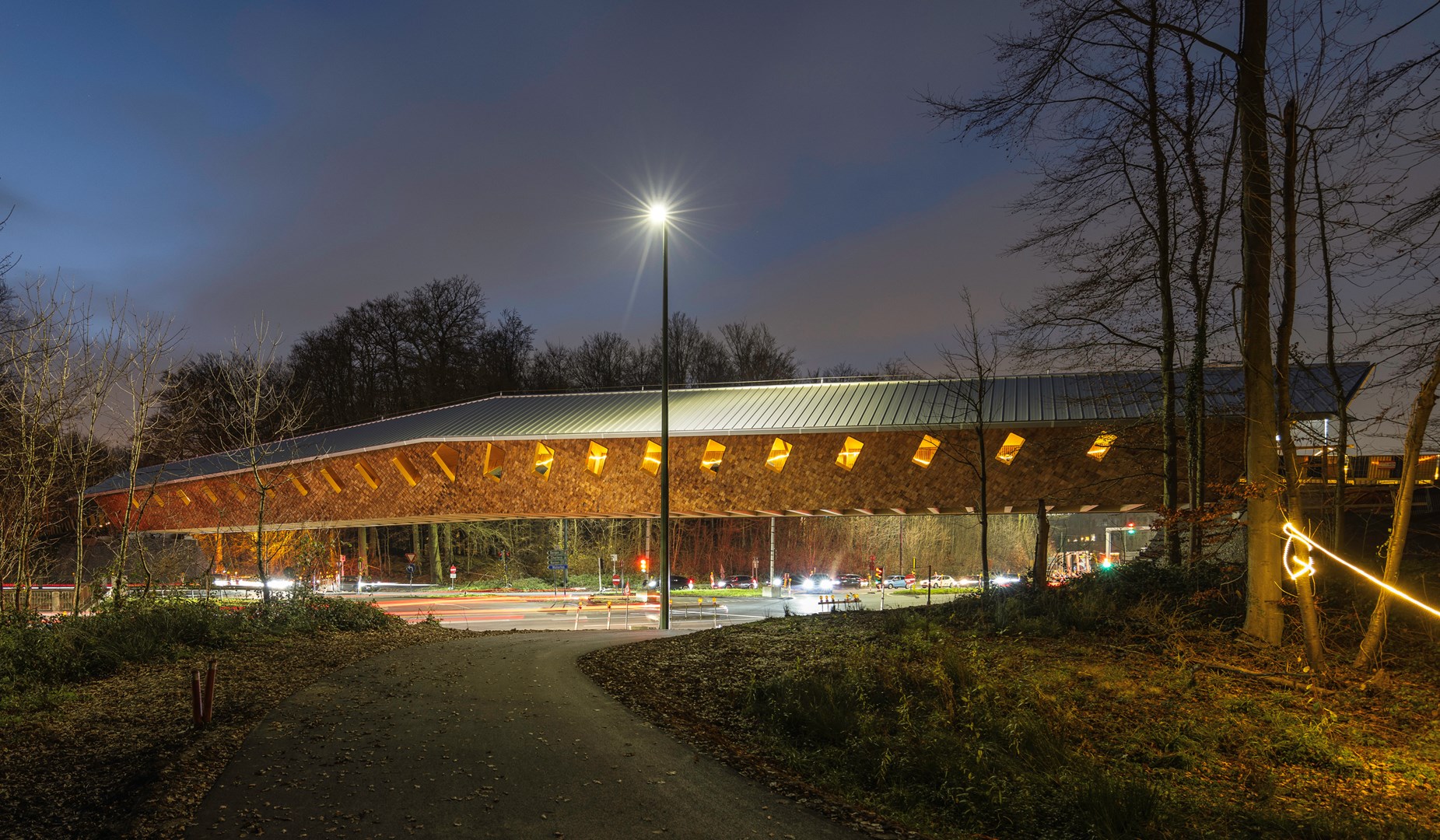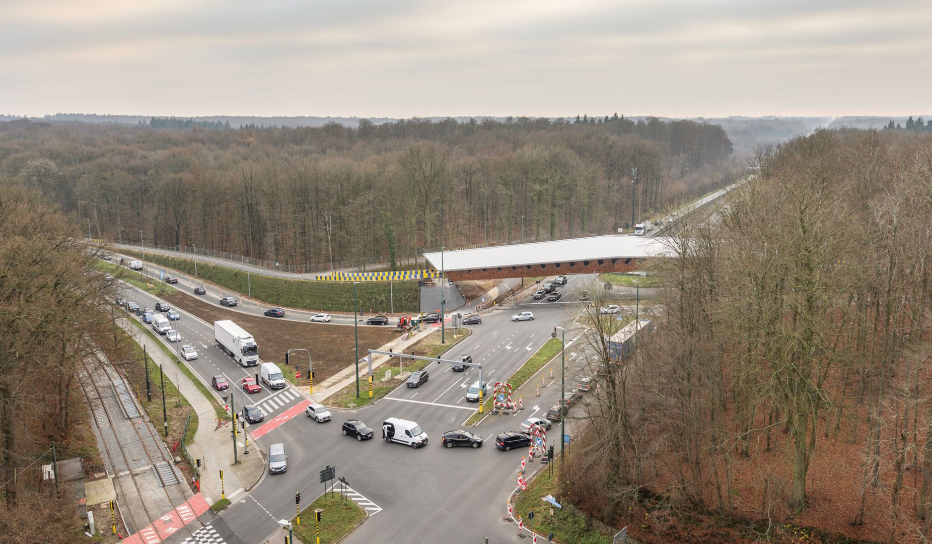 Recent werd de fiets- en voetgangersbrug boven het Vierarmenkruispunt in het Zoniënwoud officieel in gebruik genomen. Deze unieke houten brug, ontworpen door Ney & Partners, is een cruciale schakel in de fietssnelweg F29 die Brussel, Tervuren en Leuven verbindt. Met een innovatieve constructie van biogebaseerde materialen zet het project in op duurzaamheid en mobiliteitsverbetering.