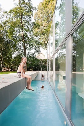 Deze transformatie van gebouwde vormen in zwevende vlakken die in een transparante ruimte zijn opgehangen, brengt een opvallende dematerialisatie van architectuur teweeg. Samen met de royale verdiepingshoogte van 4,40 meter van de hele leefruimte, resulteert dit in een transgressie naar een andere leefwereld.