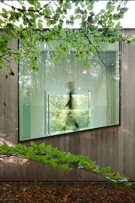 De bosrijke context vormde de aanzet tot een aantal opvallende ontwerpkeuzes. Het langgerekte volume staat in contrast met de verticaliteit van de bomen. De situering van het huis loodrecht op de weg zorgt ervoor dat het beeld van het plot niet wordt gedomineerd door een menselijke ingreep. Bovendien speelt het idee van een glazen doos in op het panoramische zicht vanuit elke woonruimte, de beleving van luxe wonen in een oeromgeving en een maximale daglichttoetreding in het schaduwrijke bos.