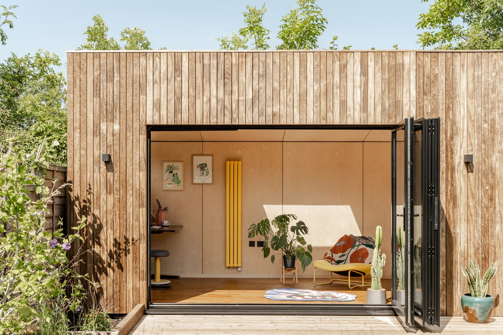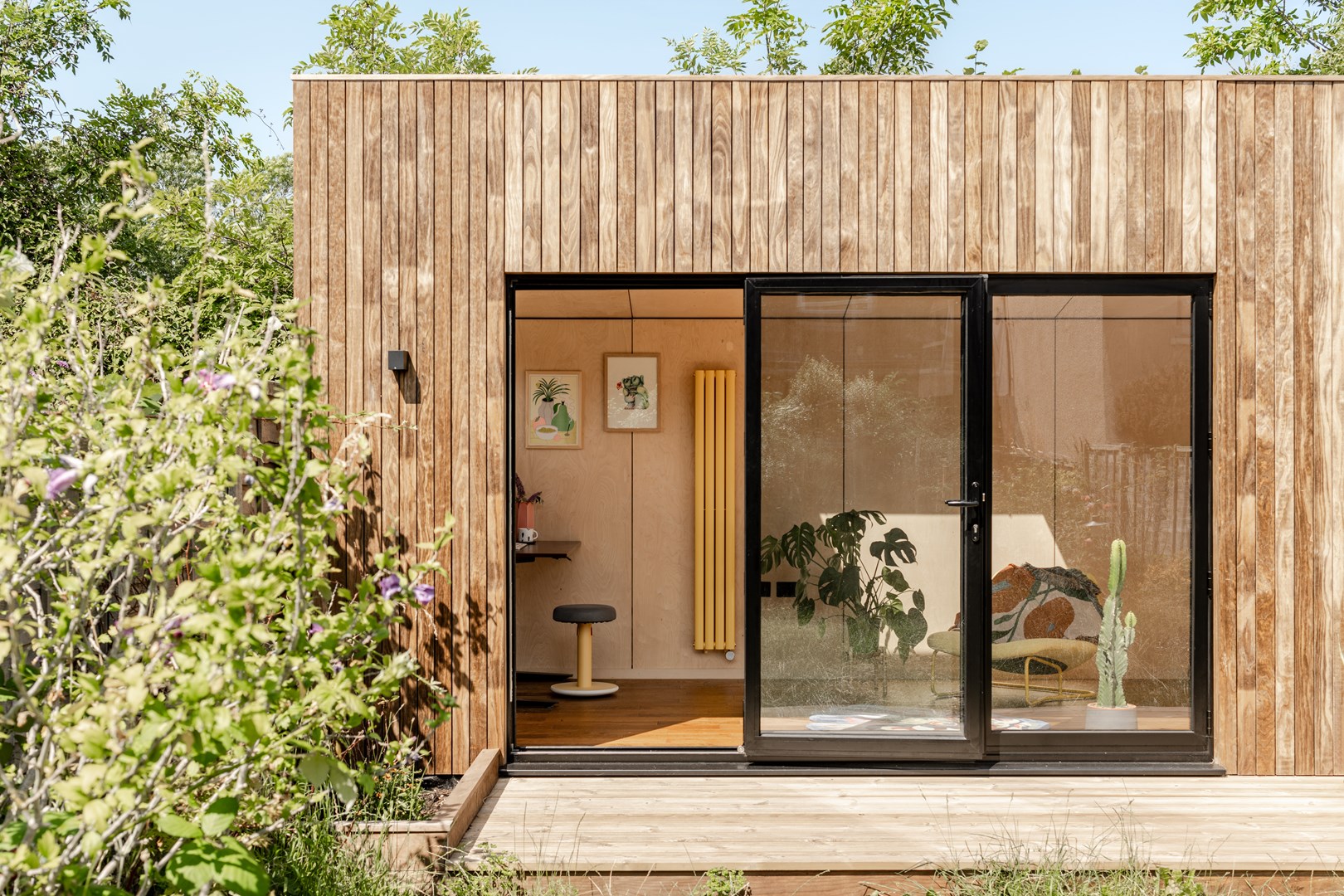 Ontwerper Mattias Brietholz, die in november 2022 naar zijn huis in de buurt van Londen verhuisde, vertelt: “Mijn partner en ik vonden de grens tussen thuiswerken en kantoorwerk steeds vager. Een aparte ruimte buiten ons huis, waar we ons volledig kunnen focussen op onze projecten, was al lange tijd onze droom.”