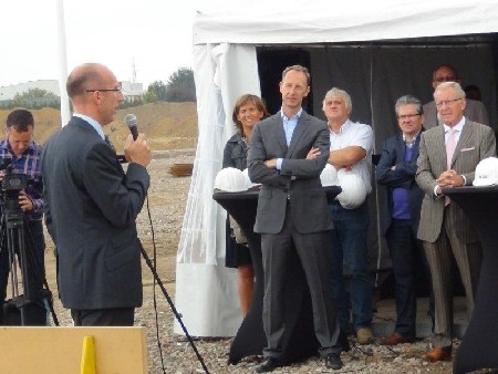 De werken zijn ondertussen gestart. De oplevering gebeurt in twee fasen. De eerste fase – goed voor 20.000 m2 – is gepland voor einde dit jaar. De oplevering van fase twee is voorzien voor einde maart 2013. De afwerking van de buitenaanleg en de aanpassingen aan de huidige gebouwen lopen nog tot juli 2013.