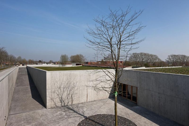 De vraag voor een ontwerp voor een nieuw stedelijk kerkhof was een ander paar mouwen. De plek was nochtans hemels: aan de rand van de stad, op een glooiende helling, die bij wijze van spreken doodloopt op het platte niemandsland (of niemands platteland). De ingreep van Secchi is wel een meesterwerk geworden. Hij laat elf horizontale vlakken neerdalen naar de horizon toe. Met paden en keermuren scheidt hij scherp de grenzen van de laatste rustplaatsen af, voor ze verdwijnen in het ongewisse van het landschap. Op de groene grastapijten (kamerbreed, want in Kortrijk gemaakt) staan simpele kubussen één voor één zichzelf te zijn als monumenten voor de onvermijdelijke levenswijsheid ‘tot as zult ge wederkeren’. Het is een vitaal kerkhof, waar het goed toeven is voor wandelaars, die de grote vragen over leven en dood niet uit de weg willen gaan.