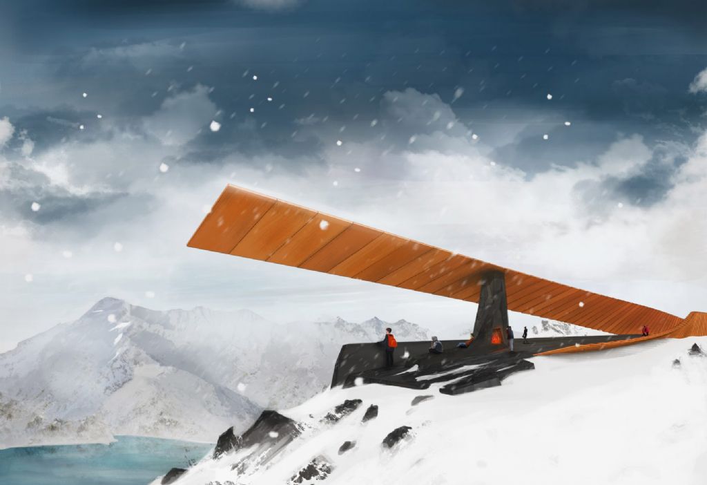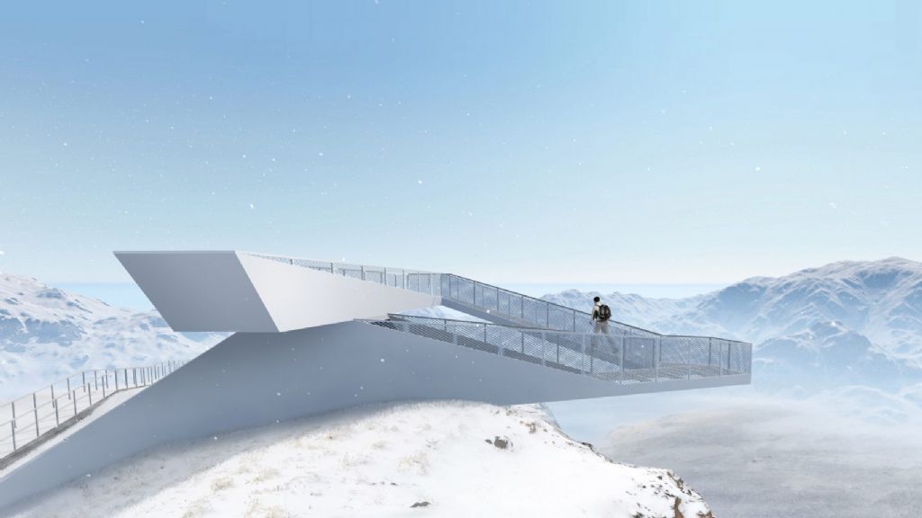 De Italiaanse architecten Guiseppe Pastonesi, Desislava Georgieva, Marchela Varbanova en Nina Gerosa van Studio S64 gingen met de derde prijs aan de haal. Een prijs die ze hadden te danken aan hun strak, driehoekig observatiedek dat tien meter over de krater helt. De open ruimtes tussen de metalen vloer van het platform bieden extra zicht op de krater. De witte metalen wanden dienen dan weer als camouflage voor de sneeuw tijdens de wintermaanden.