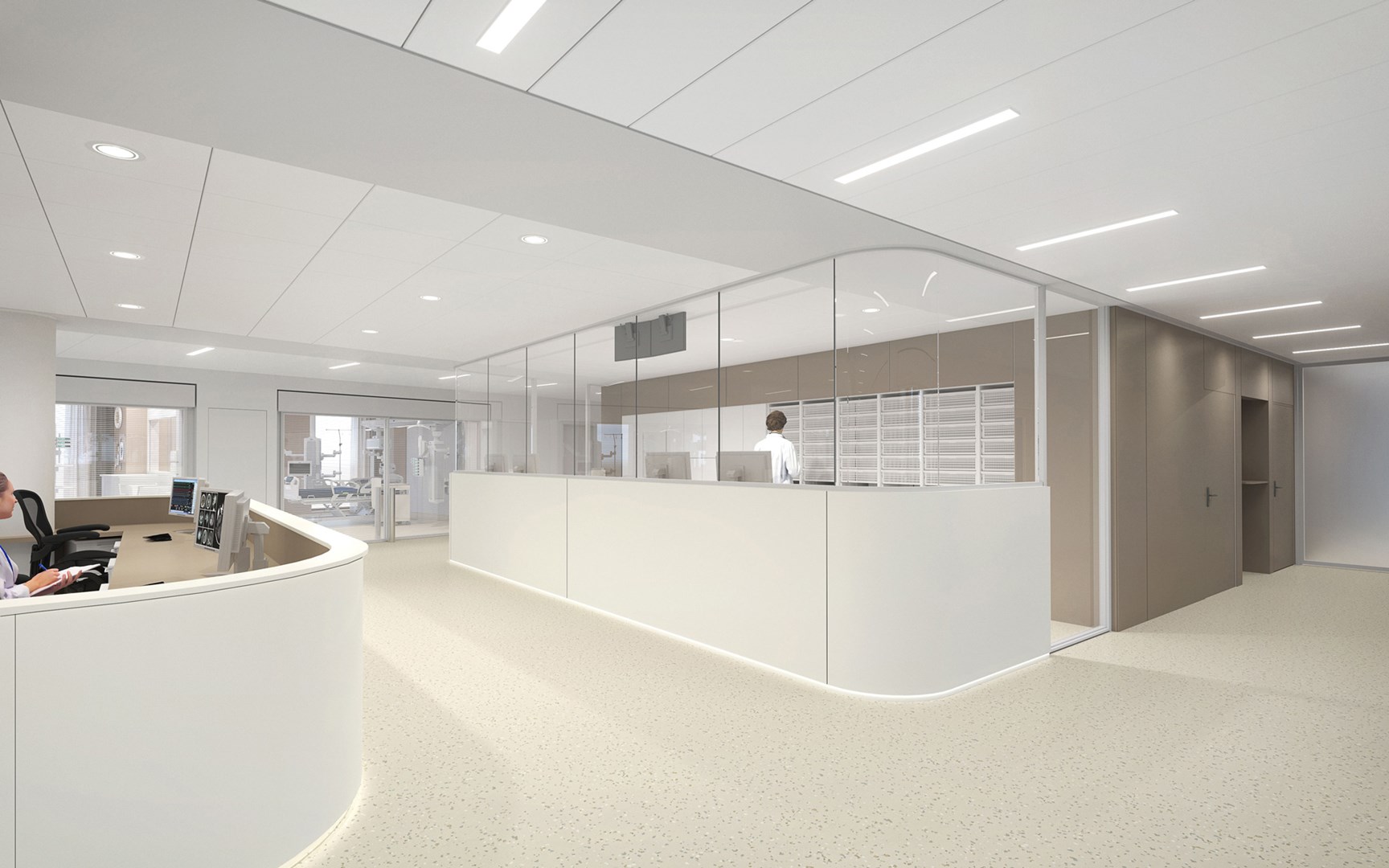 Daarnaast worden zes nieuwe operatiekamers toegevoegd. Vier hiervan zijn bestemd voor dagbehandelingen en liggen verzonken ten opzichte van de ringweg. Twee hybride OK’s op een hoger niveau sluiten direct aan op het bestaande operatiecomplex, wat een efficiënte integratie van oude en nieuwe functies mogelijk maakt.