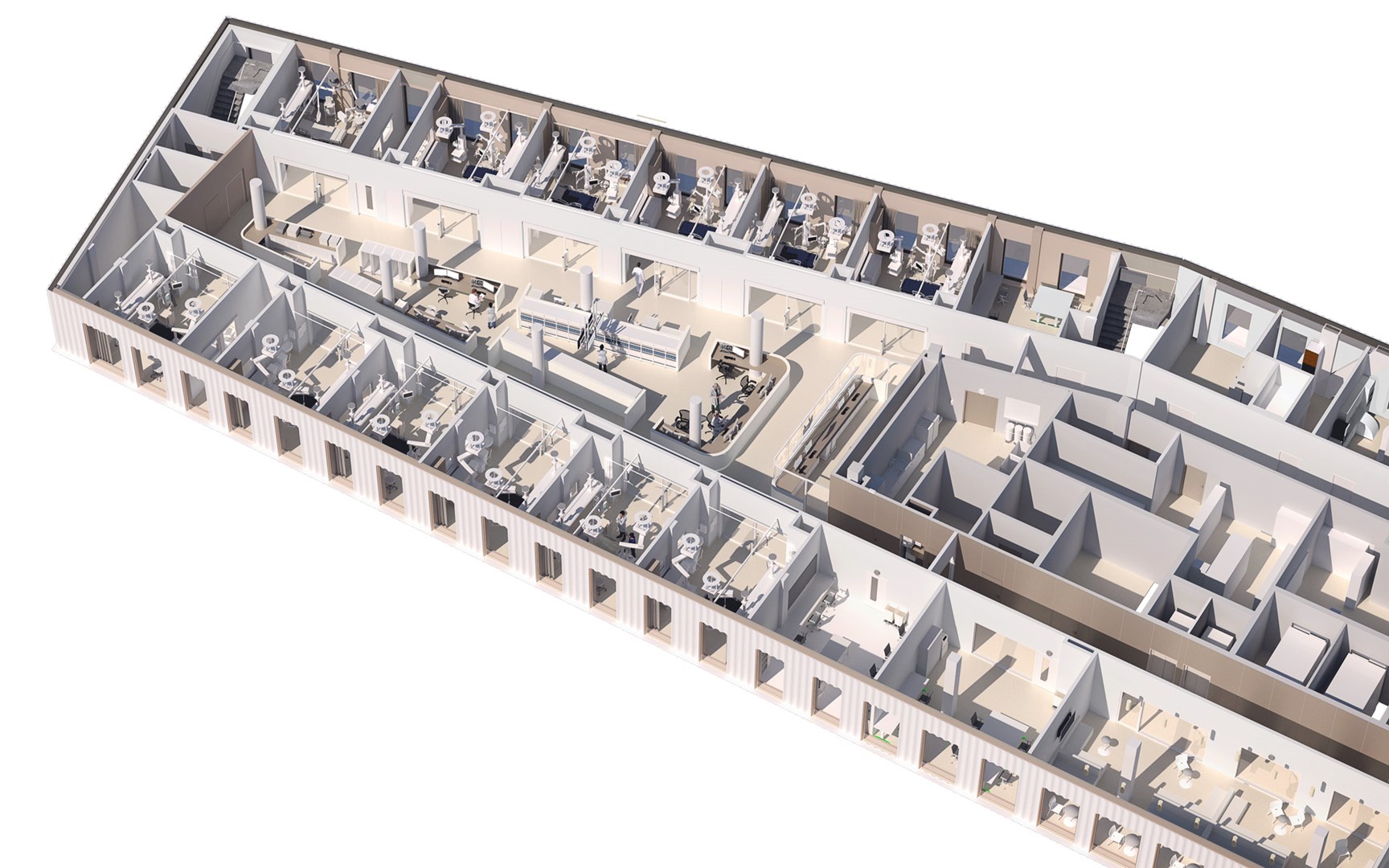 De nieuwbouw biedt ruimte aan 72 intensive care bedden, verdeeld over drie verdiepingen met gestandaardiseerde en flexibele units van twaalf kamers. Centraal in elke unit bevinden zich voorzieningen zoals verpleegposten, medicatieopslag en mobiele apparatuur. Op de vijfde verdieping is een gespecialiseerde afdeling met twaalf IC-kamers voor brandwondenpatiënten, die ook als reguliere IC-kamers kunnen worden ingezet. Een extra unit op de tweede verdieping huisvest zowel twaalf IC-kamers als post-CCU-kamers voor patiënten die herstellen van hartbewaking.