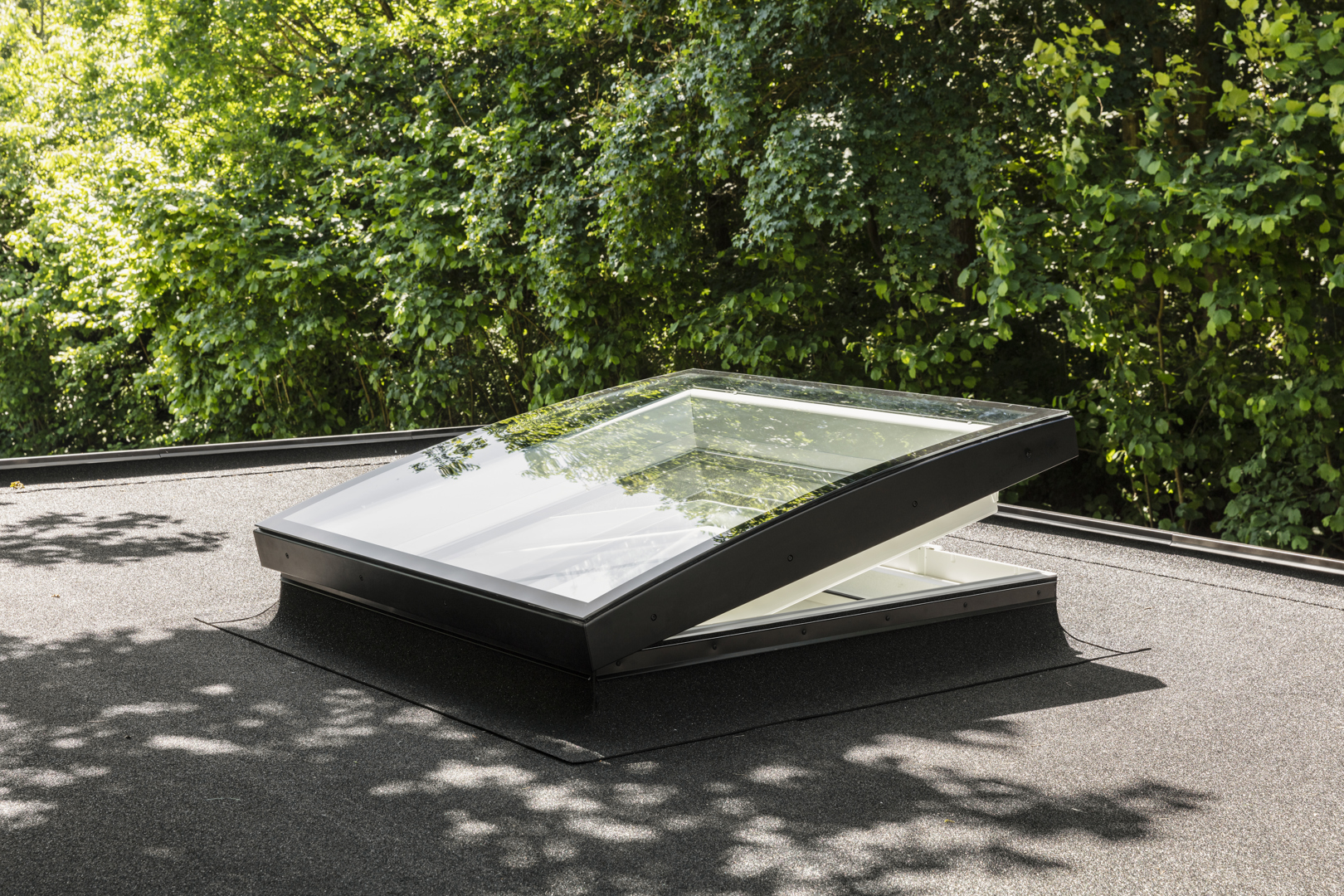 Het platdakvenster met gebogen glas maximaliseert de lichtinval en laat meer zenitaal licht binnen, wat een duidelijke troef is ten opzichte van een verticaal raam.
