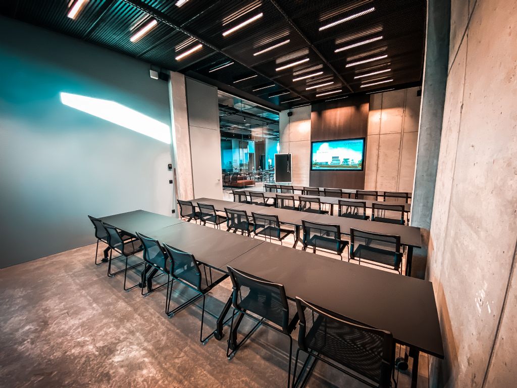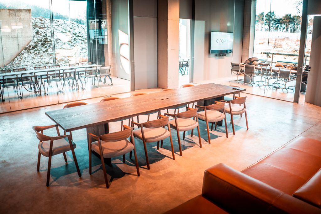 Ook het Meeting Center - het kloppend hart van de site - is nu klaar. Zodra het weer toegelaten is, wordt dit een nieuwe ontmoetingsplaats voor bedrijven en kunnen hier networking events georganiseerd worden. Ook bedrijven die niet op de site zijn gevestigd, kunnen terecht in een van de twaalf flexibele vergaderruimtes.