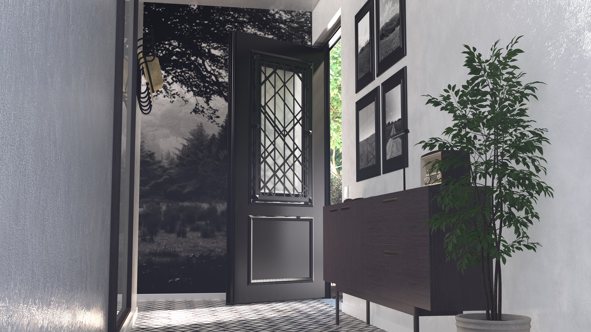 De derde innovatie gaat nog een stap verder. Onder de noemer Ferforgé ontwikkelde Frager een volledige deur als rooster. Het gaat om een eigentijdse herinterpretatie van de iconische smeedijzeren voordeur, die vooral in stedelijke herenhuizen zijn sporen verdiende. In Vlaanderen werd deze vaak als voorzetdeur gebruikt voor een glazen exemplaar, maar Frager is erin geslaagd om dit concept nu ook toe te passen op kunststof en aluminium deuren.